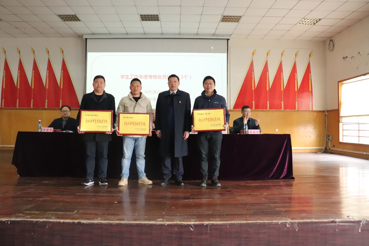 随后,副院长高永兴宣读了2020年度学生工作先进团体和个人表彰文件。学生工作年度考核优秀单位、优秀辅导员、优秀团总支书记、就业工作先进个人、征兵工作先进个人、心理帮扶先进个人、资助育人先进个人、大学生创新创业赛事获奖团队依次上台领奖,各类获奖代表分别登台发言交流。与会学工人员重温“辅导员誓词”。