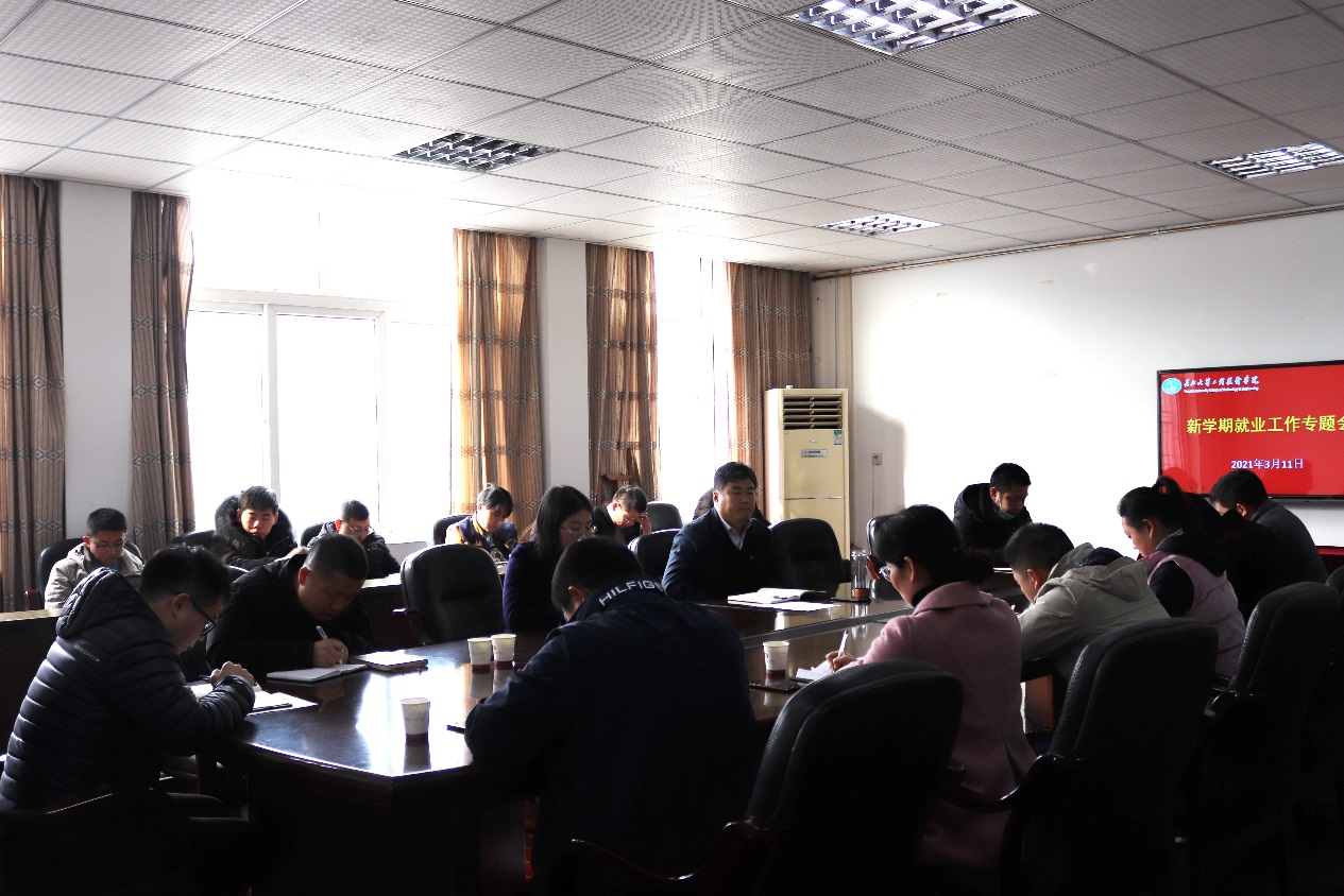 本网讯(记者 苏坤)3月11日上午,学院在行政楼四楼会议室组织召开新学期就业工作会议。党委副书记于永伟、各分院党总支副书记、毕业班辅导员、校企合作与就业指导处工作人员参加会议。会议由校企合作与就业指导处处长莫修梅主持。