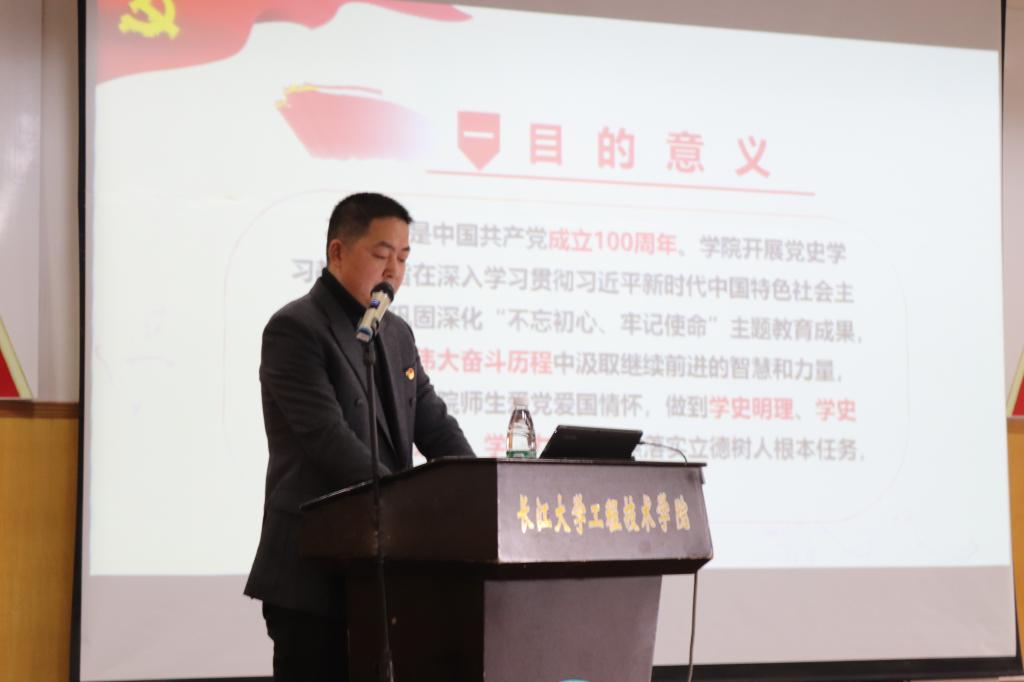 金书记强调,开展党史学习教育,是牢记初心使命、推进中华民族伟大复兴历史伟业的必然要求,是坚定信仰信念、在新时代坚持和发展中国特色社会主义的必然要求,是推进党的自我革命、永葆党的生机活力的必然要求。全体共产党员要深刻铭记我们党百年奋斗的光辉历程,深刻认识我们党为国家和民族作出的伟大贡献,深刻感悟我们党始终不渝为人民的初心宗旨,系统掌握我们党推进马克思主义中国化形成的重大理论成果,学习传承我们党在长期奋斗中铸就的伟大精神,深刻领会我们党成功推进革命、建设、改革的宝贵经验。党史学习教育基础在学习、目的在教育。学院各级党组织和全体共产党员要高度重视,迅速行动,强化统筹协调,明确工作责任,周密部署、精心组织,确保高标准高质量完成学习教育的各项任务,提高党史学习教育的成效,围绕学院重点工作,不断推进教育教学改革,努力开创学院事业发展的崭新局面,以优异成绩庆祝建党100周年。