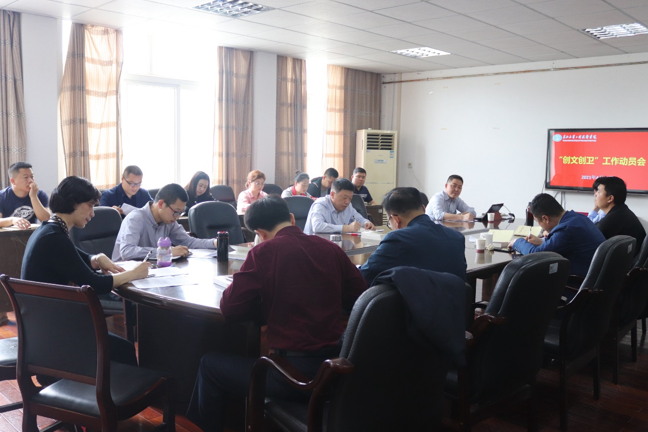 本网讯(记者 黄思琦)4月30日,学院“创文创卫”工作动员会在行政楼四楼会议室召开。党委书记金鑫、党委副书记于永伟、副院长章保平、各分院党总支副书记以及各相关职能部门负责人参加会议。会议由党委书记金鑫主持。