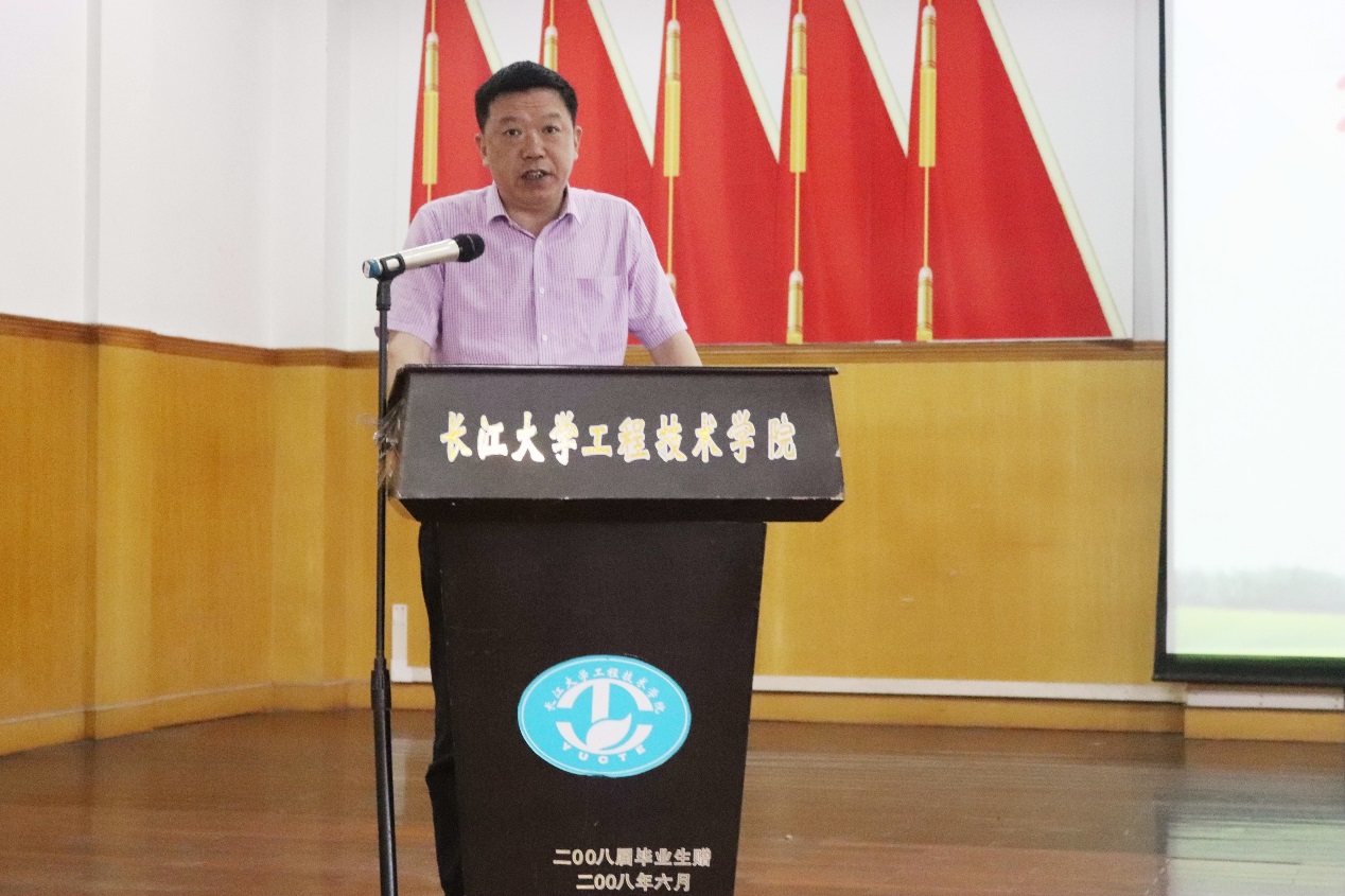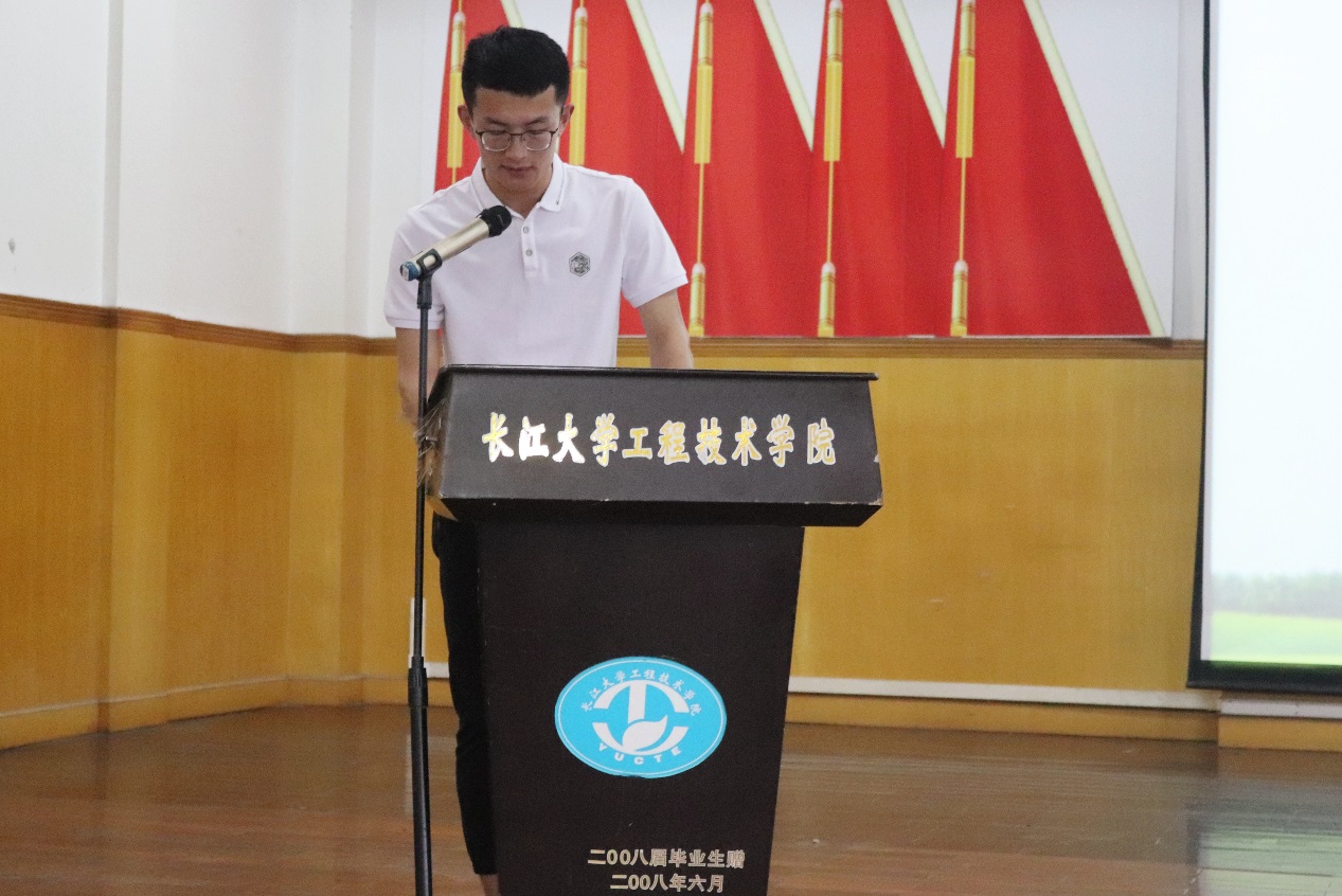 管理学院市场营销61702班江赛代表全体校友联络员发言。他希望大家不忘母校培育之恩,时刻铭记校友联络员的身份,承担起联系校友、联系母校的桥梁作用,一直关心支持母校发展。