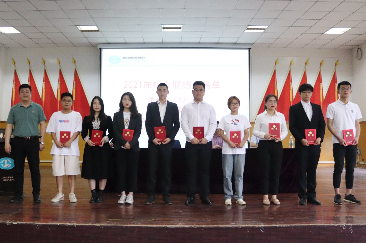 会上,校企合作与就业指导处科长苏坤宣读2021届毕业生校友联络员聘任文件。党委副书记于永伟为受聘的71名校友联络员颁发聘任证书。