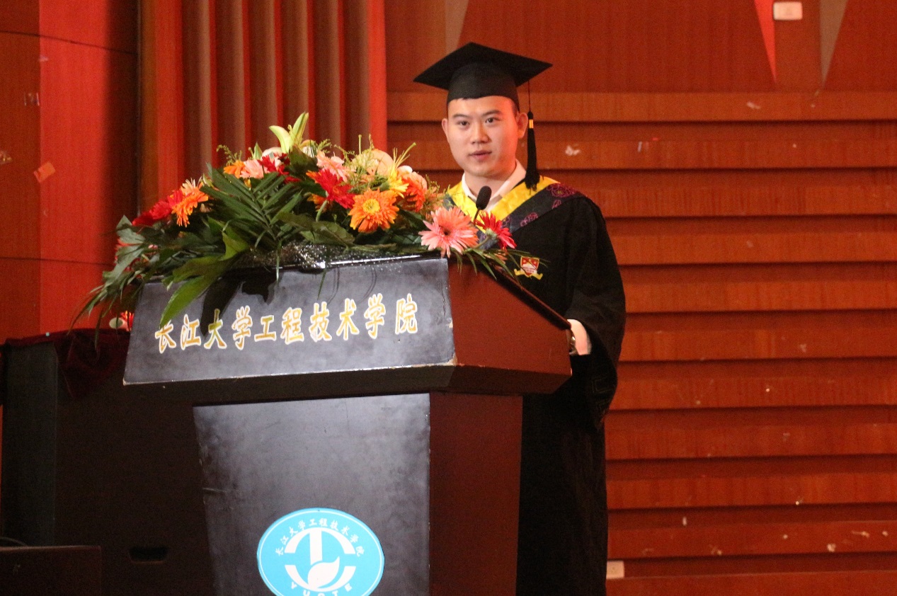 毕业生代表、机械工程学院张智同学深情感谢母校的四年培育,他号召全体毕业生站在毕业选择的十字路口时,无论怎样选择,都要把心之所向转换为身之所在,不忘初心、坚守信念,以坚定不移的决心、果敢刚毅的品格、家国天下的情怀和不懈奋斗的热血,无愧于这个时代。