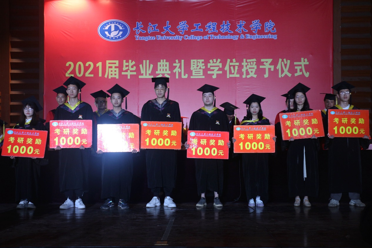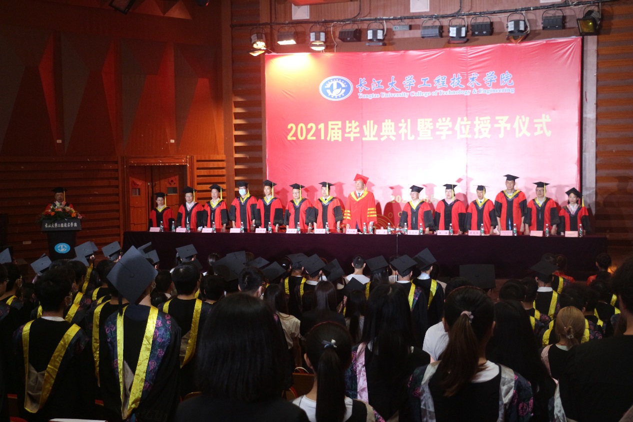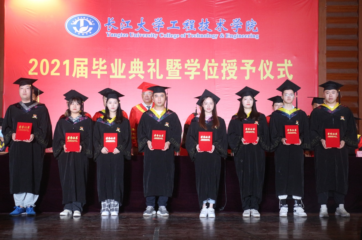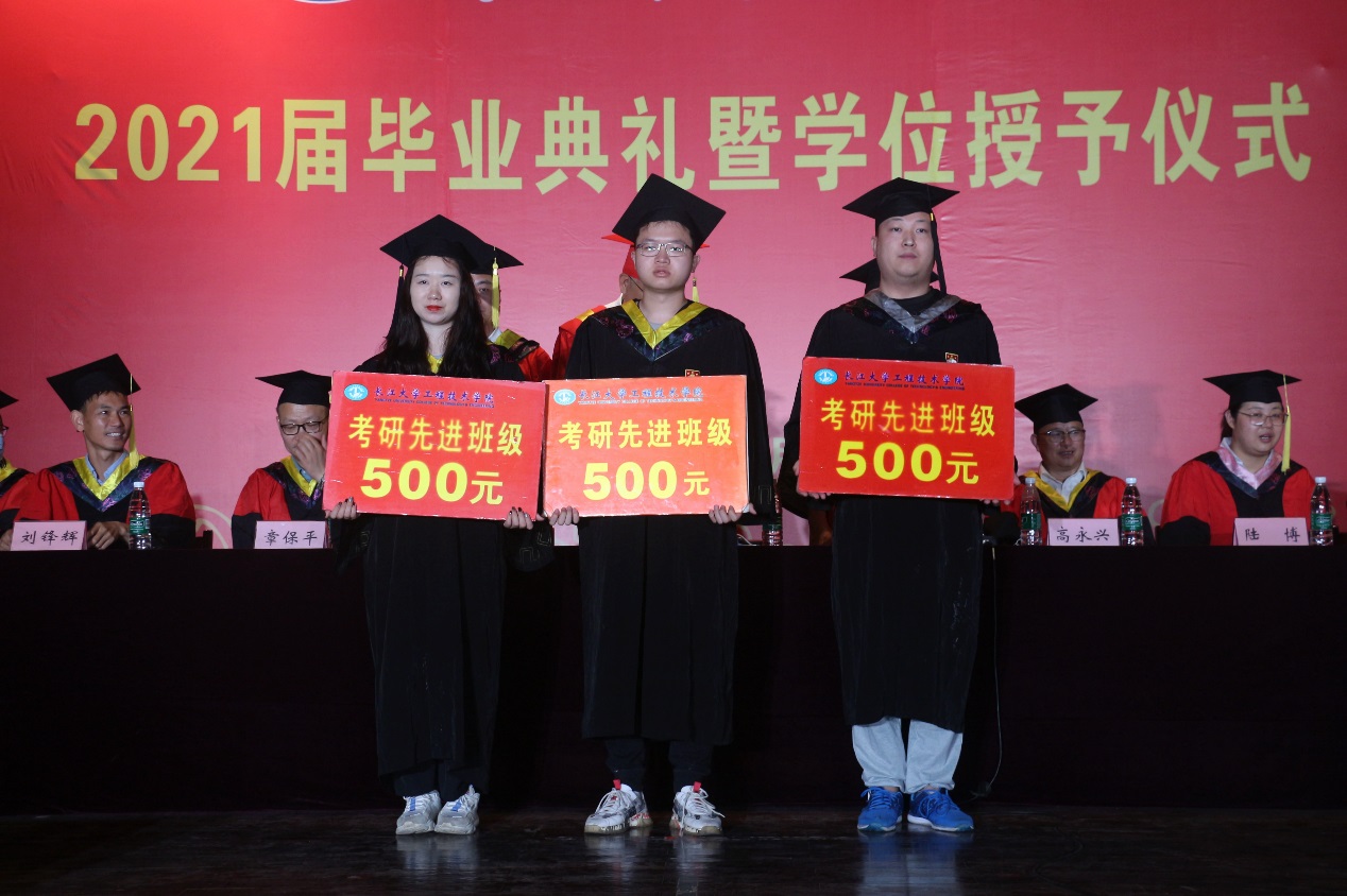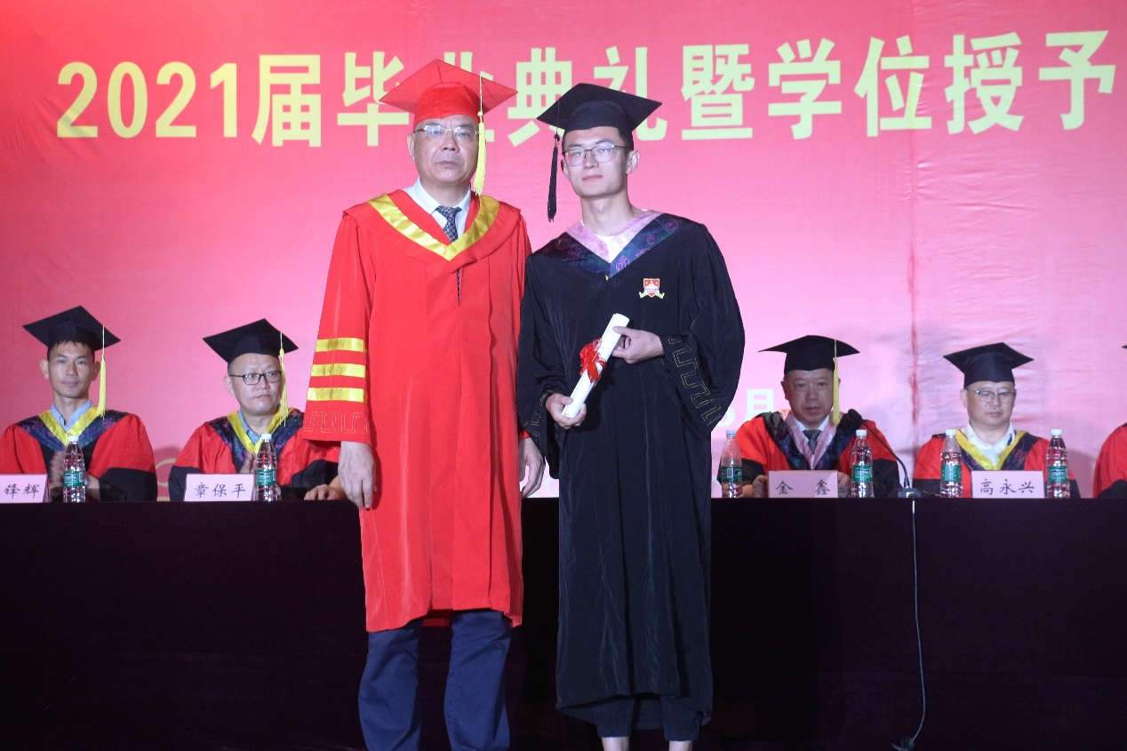 在庄严的国歌声中,典礼拉开帷幕。院领导李克华、于永伟分别宣读学位授予文件和表彰文件。学院领导为2021届优秀毕业生、考研先进个人和先进集体予以表彰,身着学士服的毕业生走上主席台,接受授予学位、拨穗正冠。