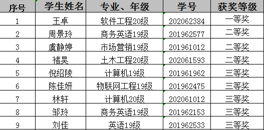 图为 获奖学生名单