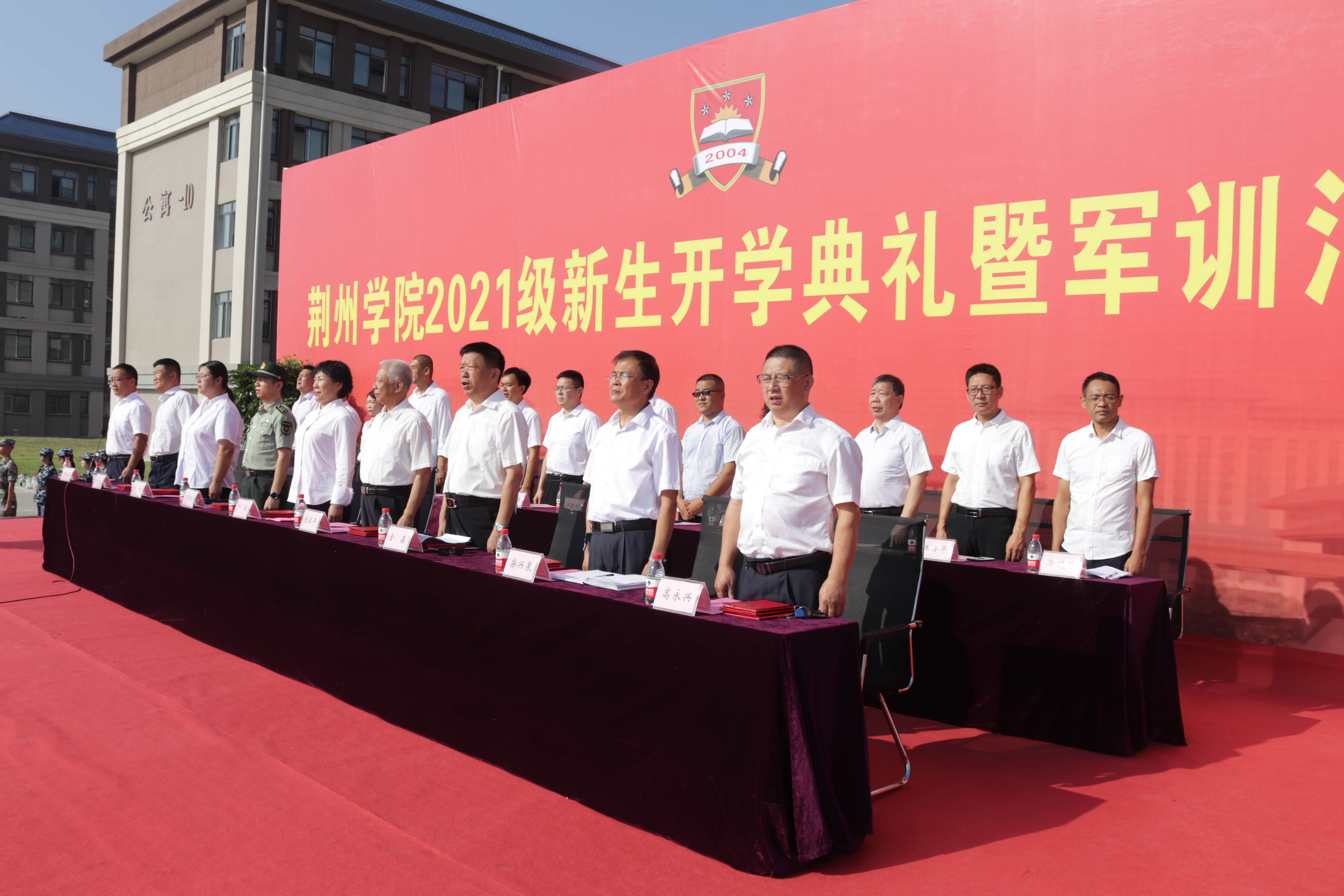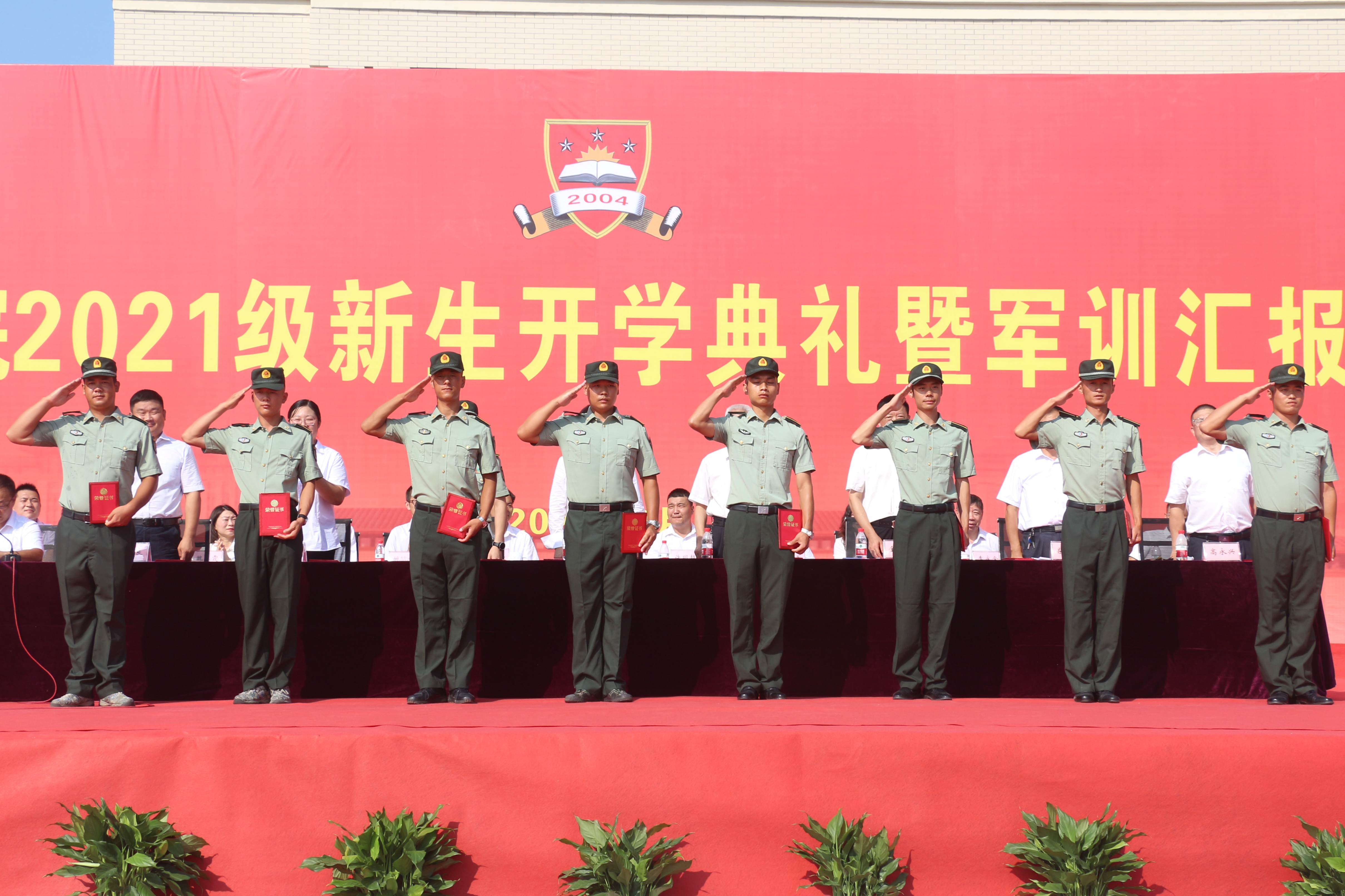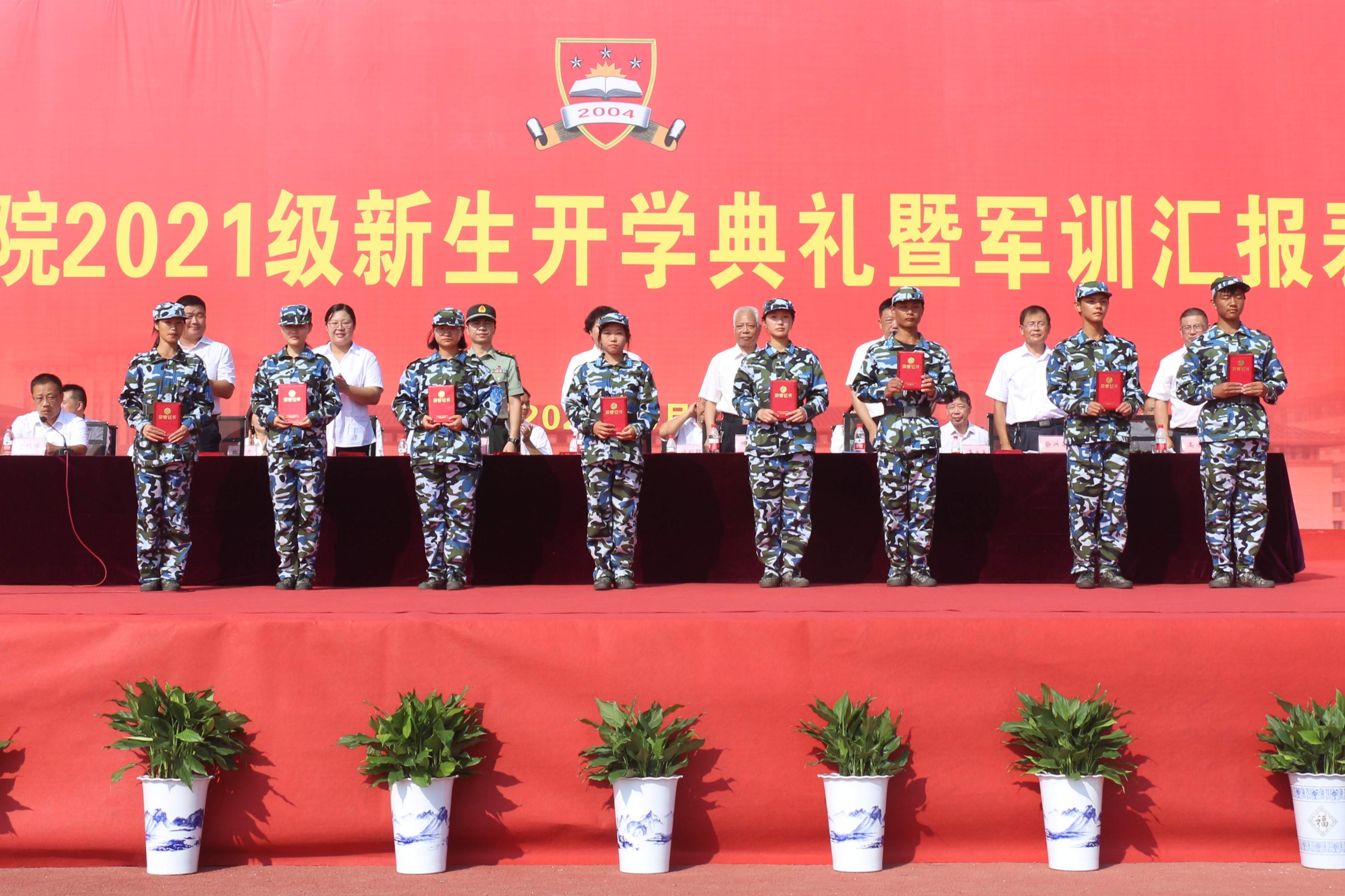 校长陈再平代表学校向荆州军分区教导队赠送锦旗。党委书记金鑫宣读表彰文件,对军训期间的先进个人予以表彰,与会领导为获奖者颁奖。