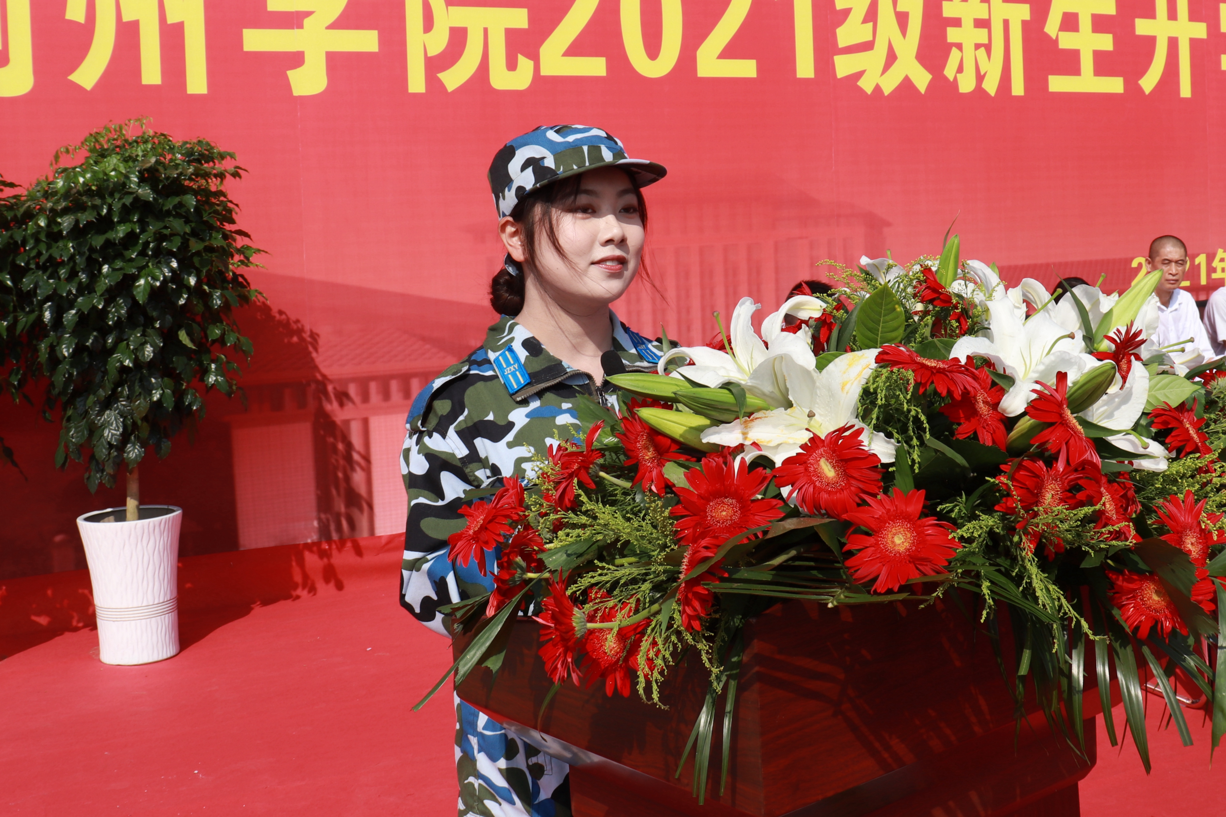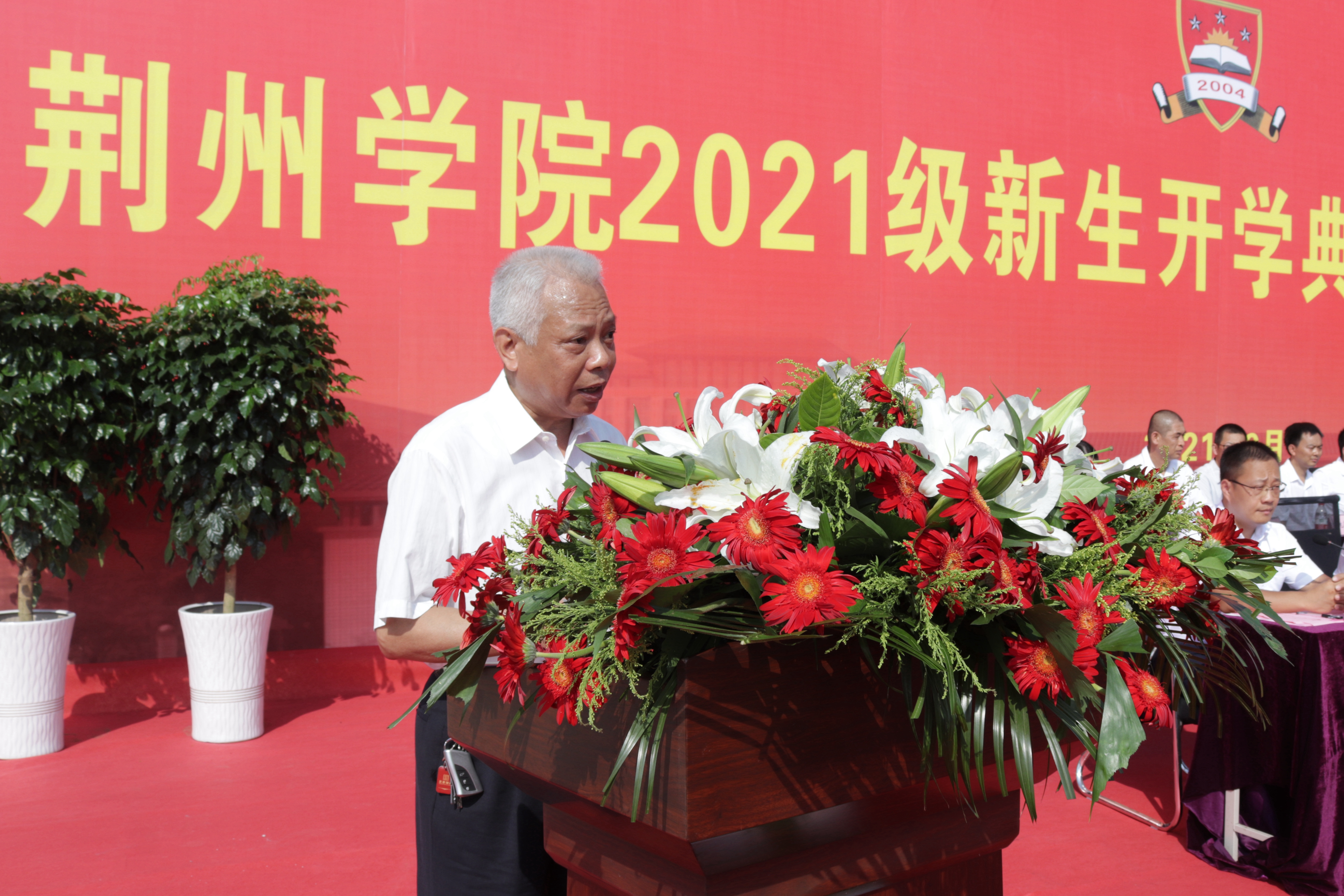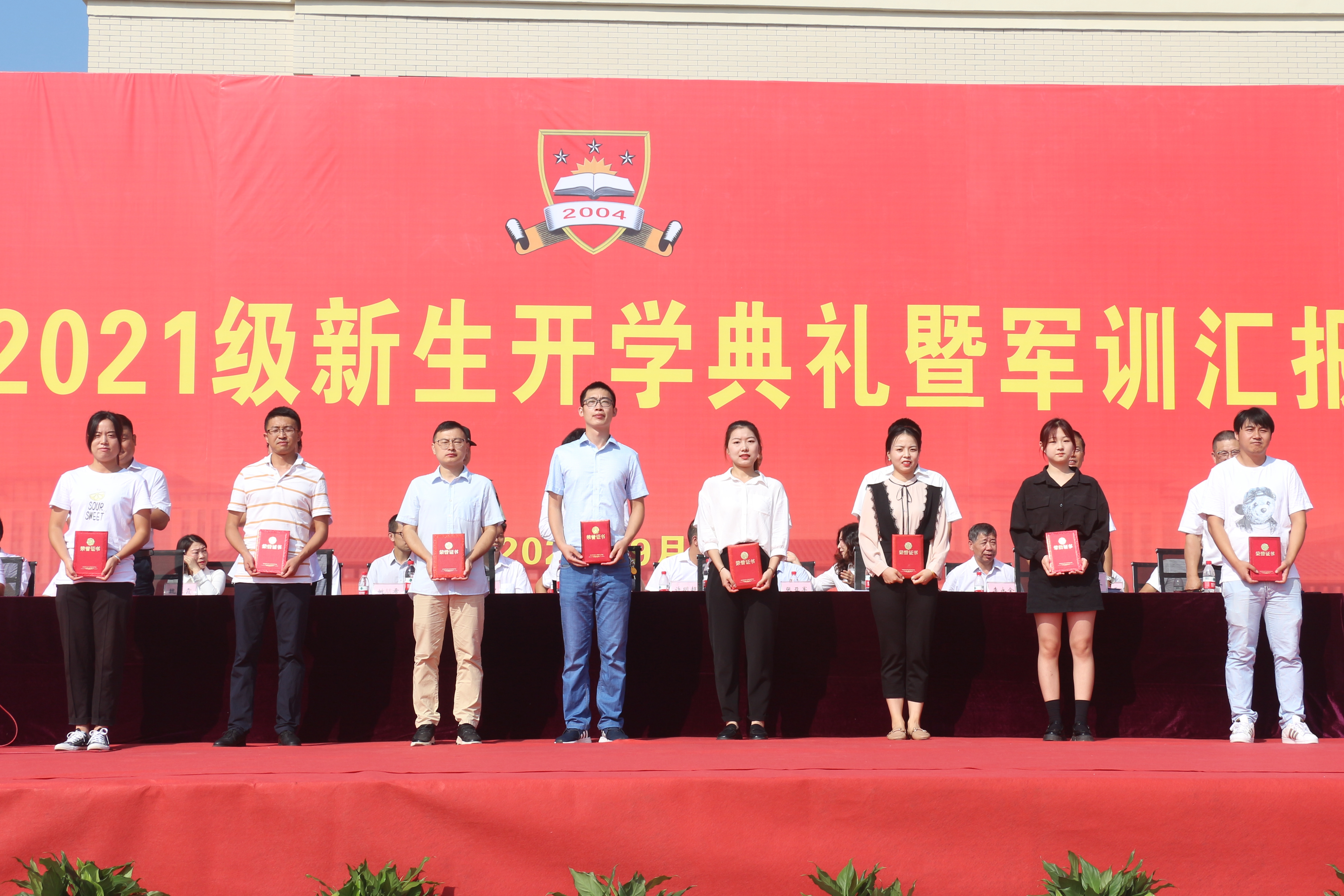 校长陈再平代表学校向荆州军分区教导队赠送锦旗。党委书记金鑫宣读表彰文件,对军训期间的先进个人予以表彰,与会领导为获奖者颁奖。