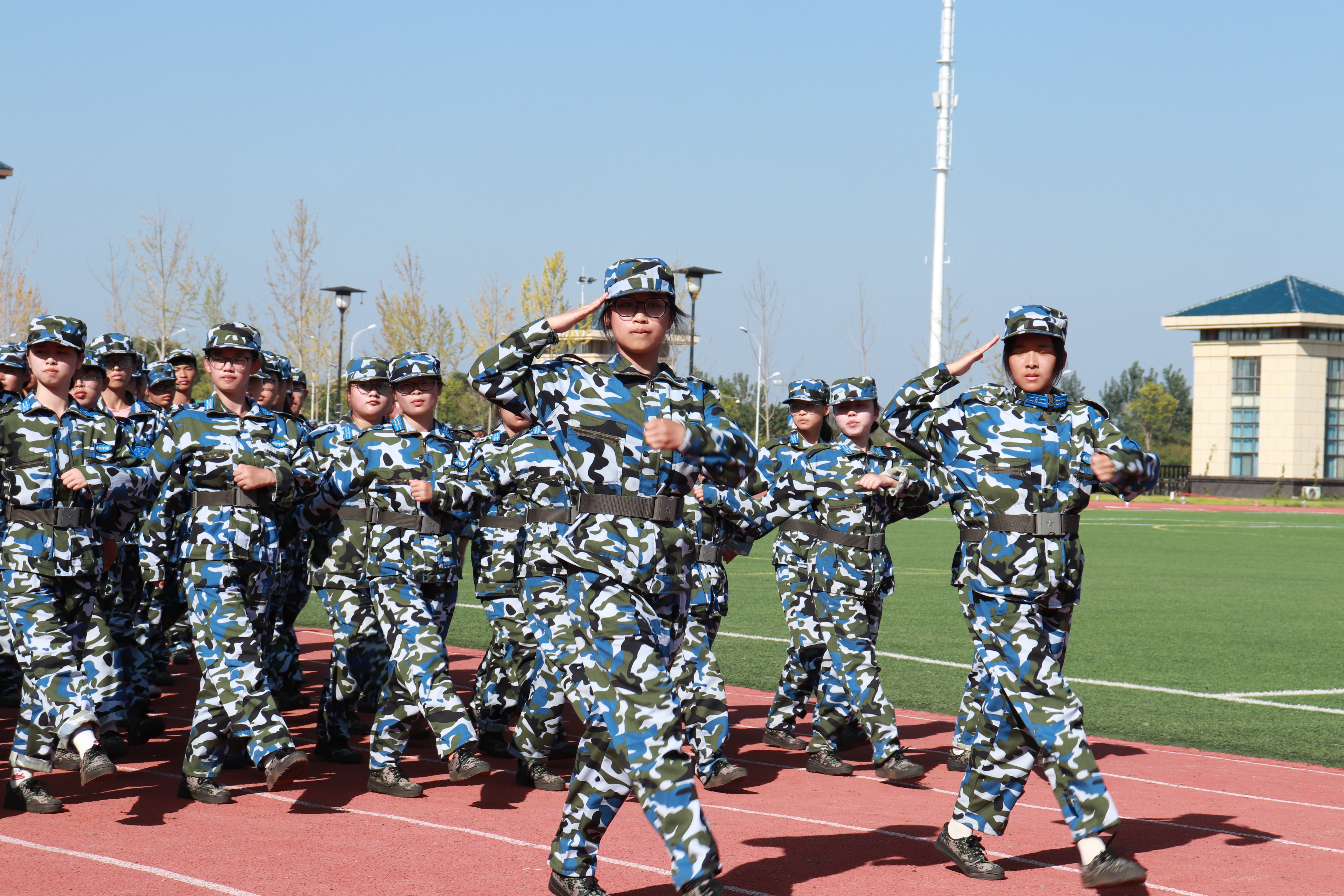 开学典礼在庄严的国歌声中拉开序幕。接受检阅的3855名新生精神抖擞,身着迷彩,用飒爽的英姿和响亮的口号依次入场。方阵字表演、匕首操、战术演练等特色方队表演,展现了昂扬向上的青春风采,“请党放心,强国有我!”铿锵有力的口号响彻校园。