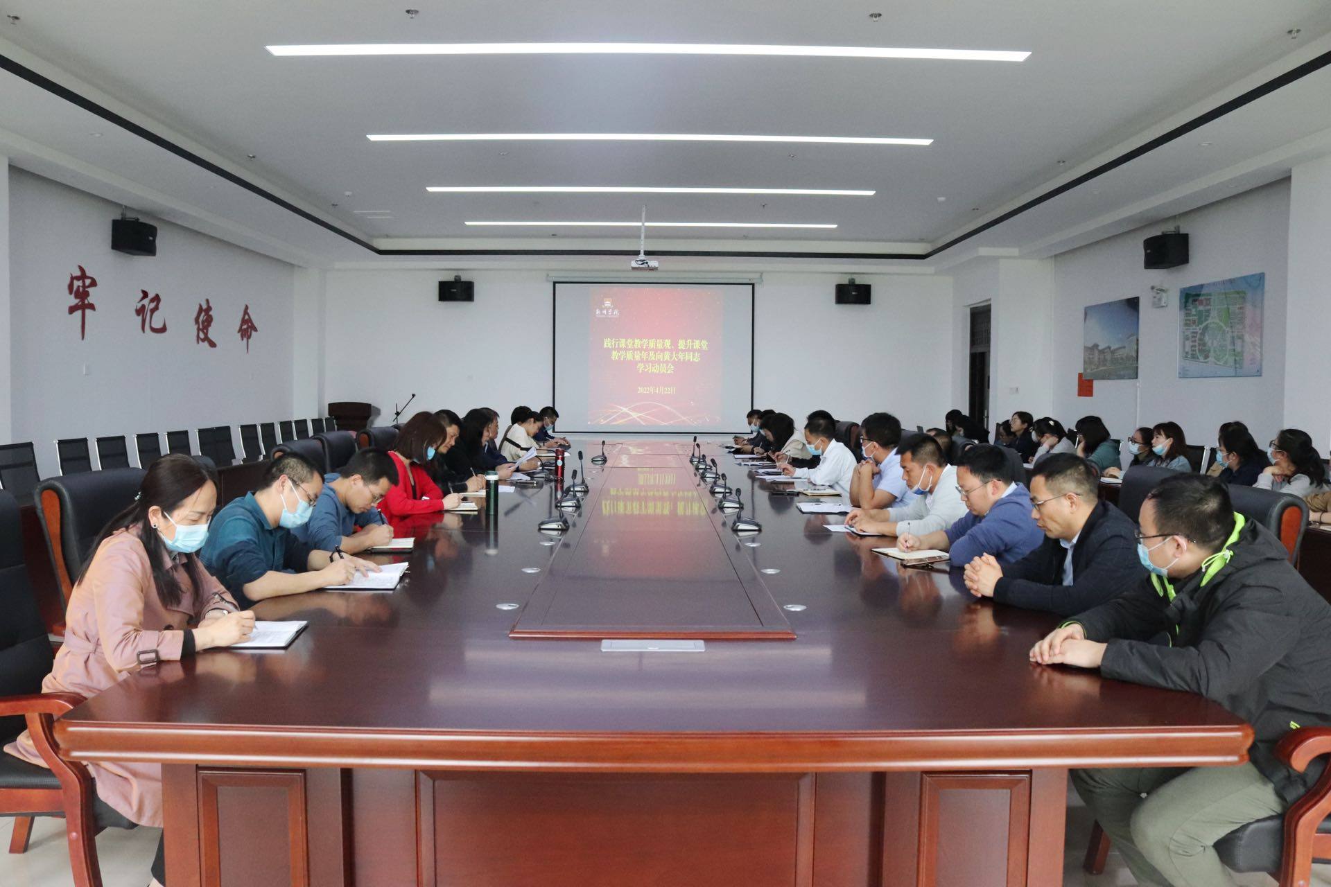 牟海霞传达了我校印发的《关于开展“践行课堂教学质量观、提升课堂教学质量年”实施方案》(荆院发[2022]29号)和《关于开展“向黄大年同志学习、做黄大年式好老师”学习教育方案》(荆院发[2022]30号)文件精神,围绕指导思想、总体要求、具体内容、实施步骤、组织领导等方面对以上两个方案作了详细解读。