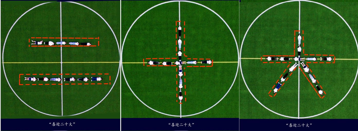 主题活动的重头戏是无人机航拍,当天下午青马学员来到了学院足球场,以饱满的精神状态投入到本次活动中,用身体摆出了“喜迎二十大”五个大字,展现了永远跟党走的决心与毅力。