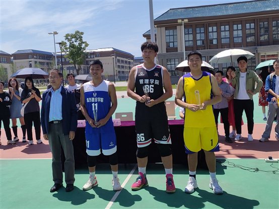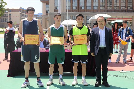 比赛结束后开始颁奖仪式,各分院运动员入场。体育教学部副主任王迪老师宣布比赛结果。城市建设学院获得冠军,管理学院和信息工程学院分获亚、季军;外国语学院和石油与化学工程学院获评本届篮球联赛“优秀组织奖”,数理学院、资源勘查工程学院、机械工程学院喜获“体育道德风尚奖”。伴随着现场掌声和欢呼声,各领导为获奖队伍依次颁奖。