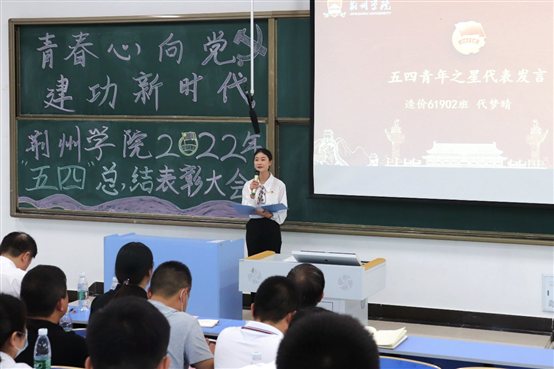 金鑫书记代表学校党委向全校广大青年致以节日问候,向受表彰的先进集体和优秀个人表示热烈的祝贺。他在讲话中强调:今年我们将迎接党的二十大的胜利召开,学习、宣传和贯彻党的二十大精神,是贯穿全年的工作主线。中国青年运动的百年历史,形成了“党有号召,团有行动”的光荣传统。共青团团结引领广大青年坚定跟党初心,牢记强国使命就是对中国共青团成立100周年的最好献礼。广大荆院青年要深入学习领会习近平总书记的重要讲话精神,立足新时代新征程,坚定不移听党话、跟党走,用脚步丈量祖国大地,用眼睛发现中国精神,用耳朵倾听人民呼声,用内心感应时代脉搏,把对祖国血浓于水、与人民同呼吸共命运的情感贯穿学业全过程、融汇在事业追求中。