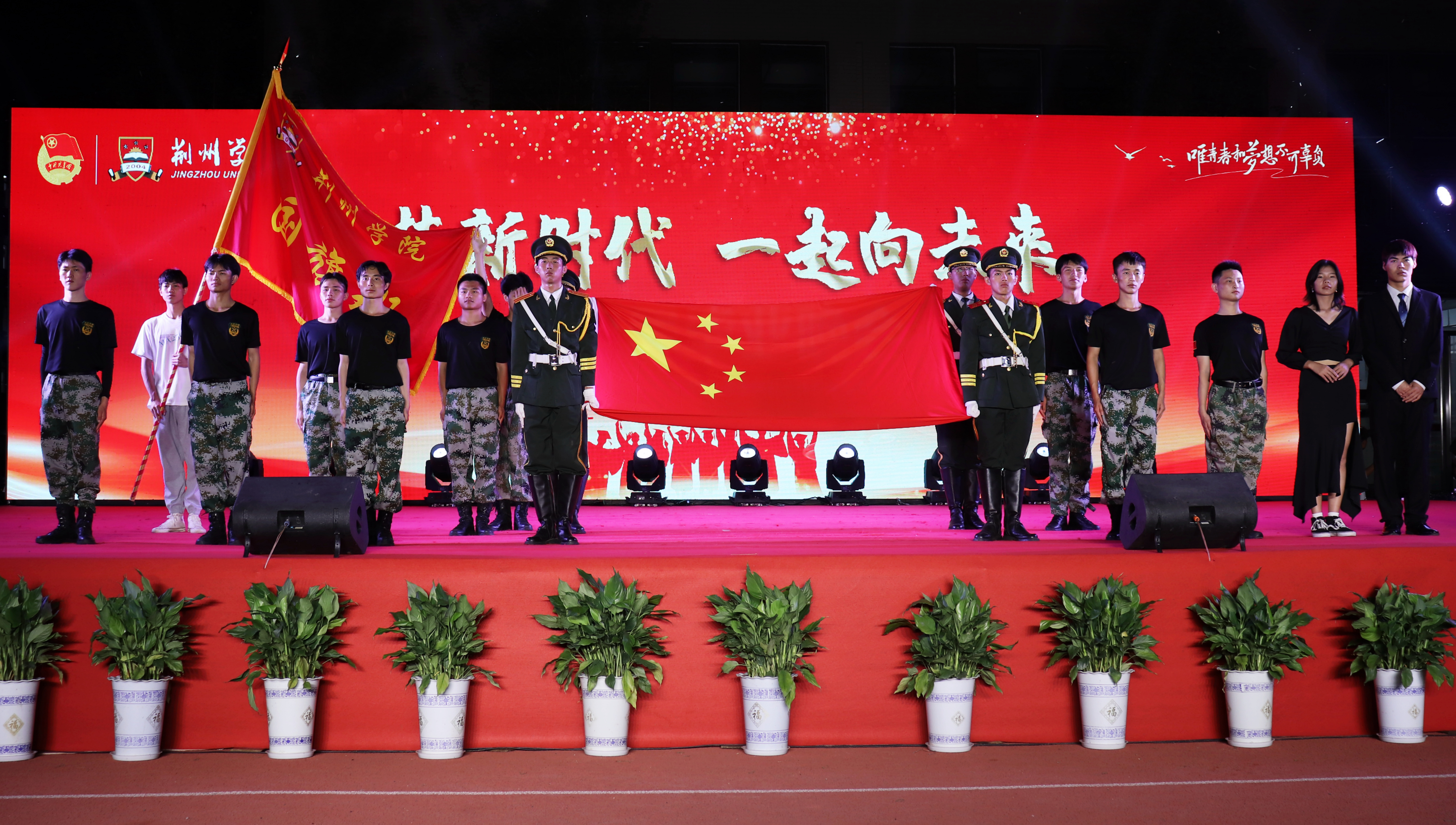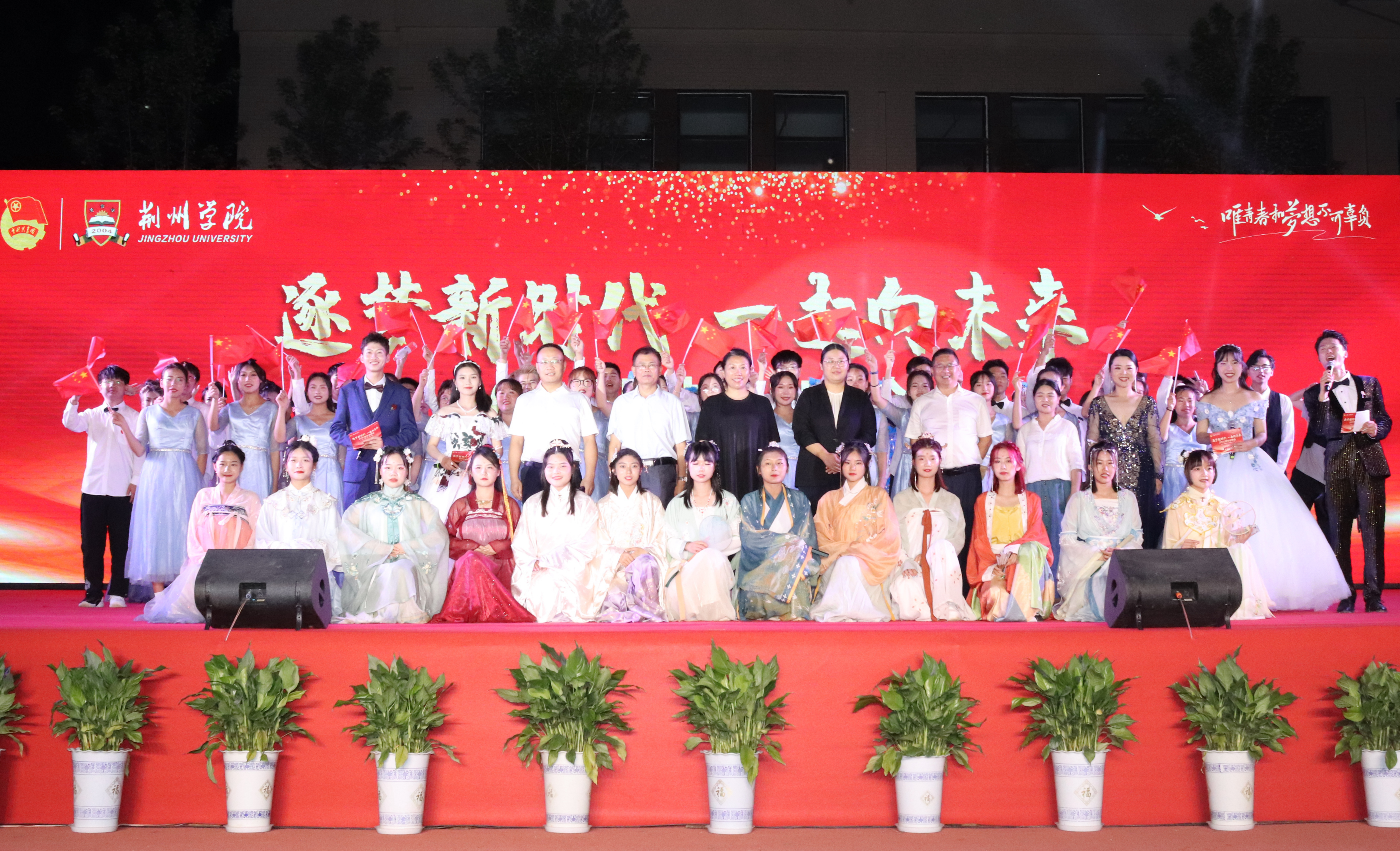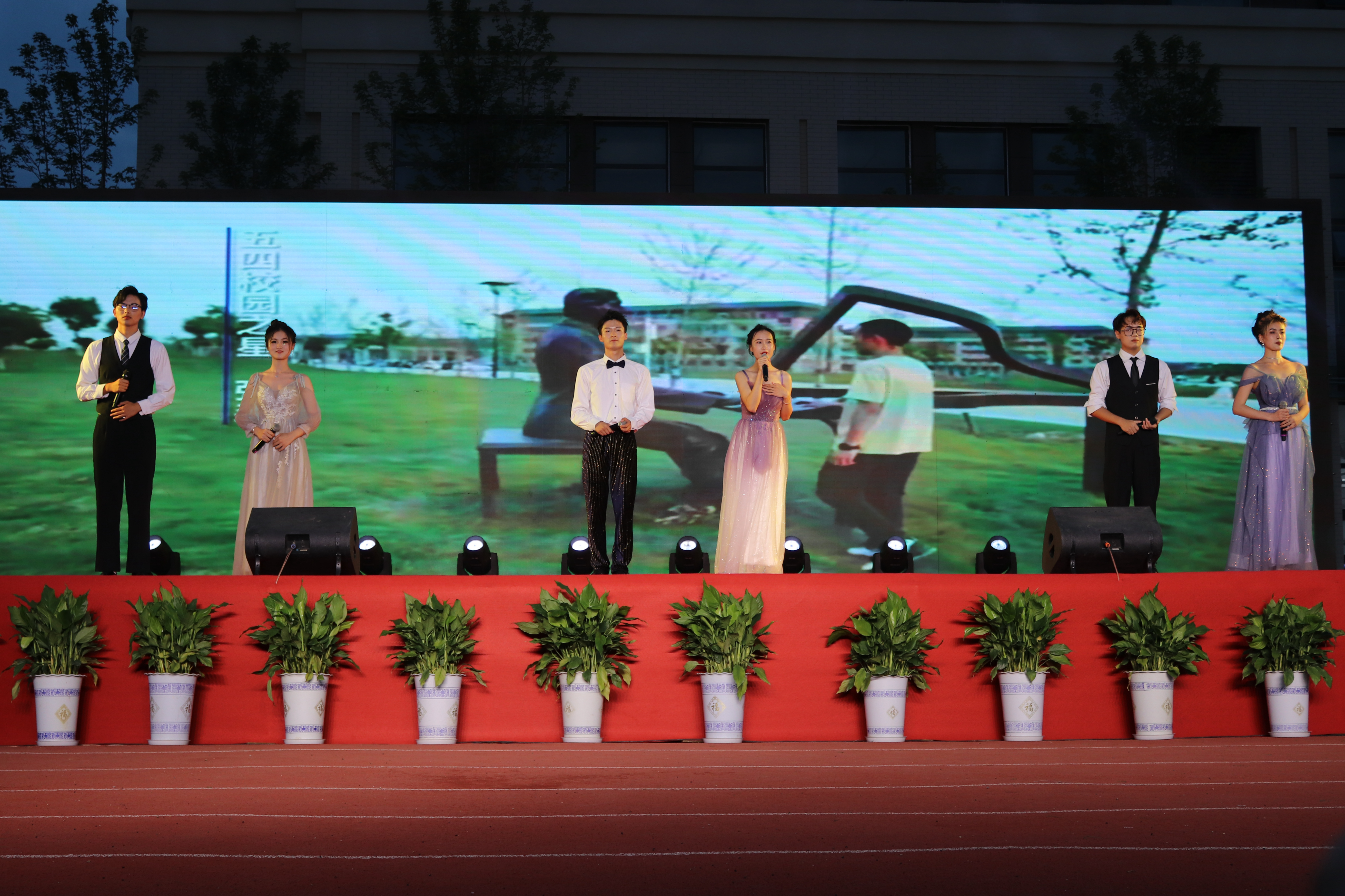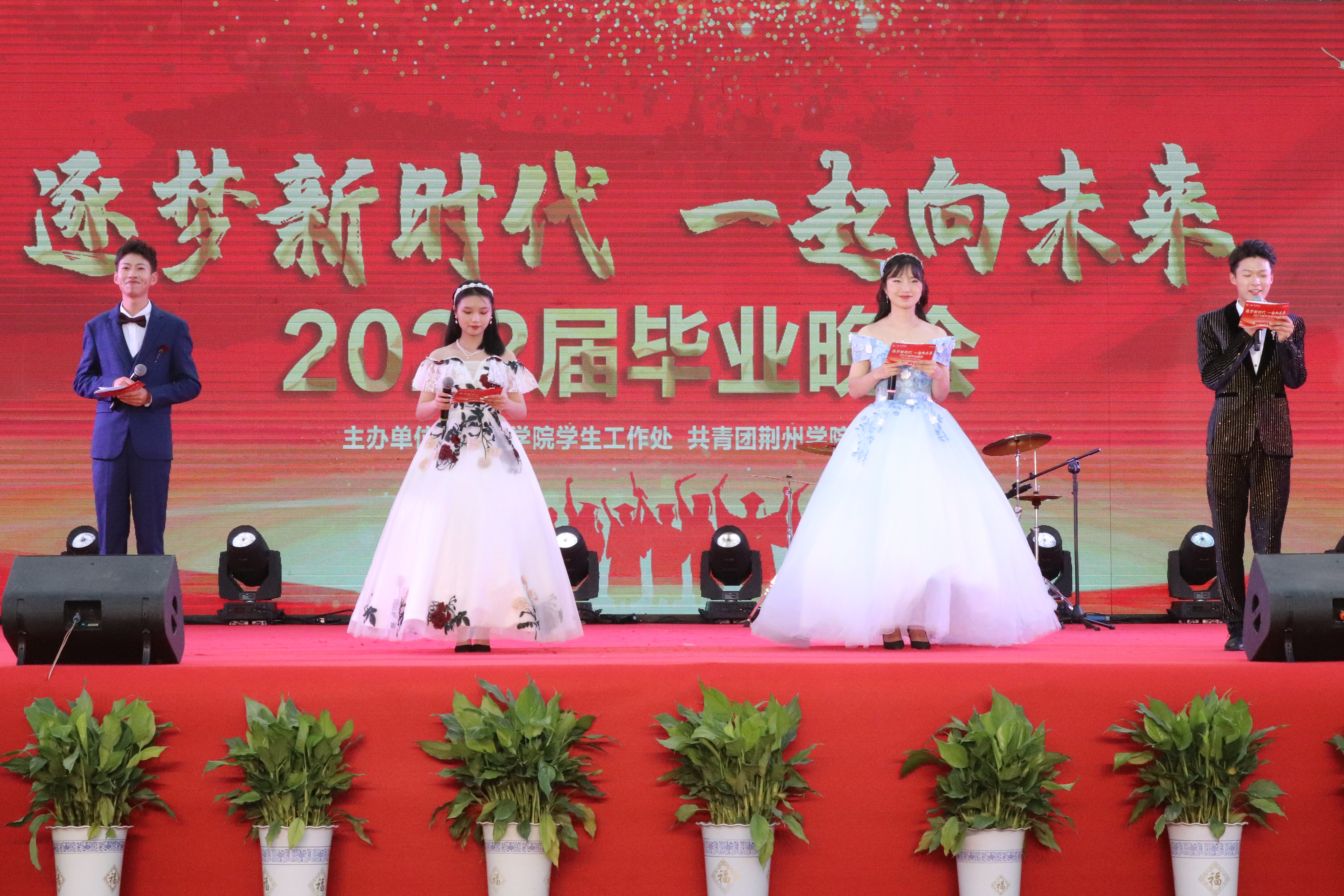 “逐梦新时代,一起向未来”毕业晚会在之音弦乐的一首《西湖》中拉开帷幕,离别的愁绪与难忘的校园回忆相互交织。整场晚会高潮迭起,精彩纷呈,动听的歌曲、曼妙的舞姿、风趣的小品、动感的说唱、激昂的朗诵、国旗班热血的格斗表演,每一个节目都甚是难忘。晚会伴随着外国语学院步慧敏老师的独唱《不忘初心》慢慢落下帷幕。