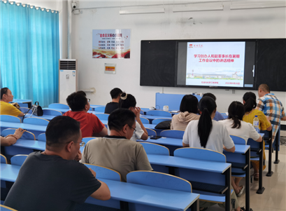 院长李凡修、副院长邓仕英分别带领教职工全文学习了集团创办人和副董事长的讲话内容,使该院全体教师充分了解集团各校学校在2021-2022学年各校建设发展中在专业申报、育人质量提升、教科研申报与成果、学生竞赛与创新创业、招生与就业等方面取得的卓越成果,对新形势下高等教育面临的挑战与发展机遇的分析和推进集团教育事业发展中党建、人才培养质量、师资队伍建设、管理机制、开放合作五大工程工作的具体目标和要求和集团对高素质干部队伍的要求。