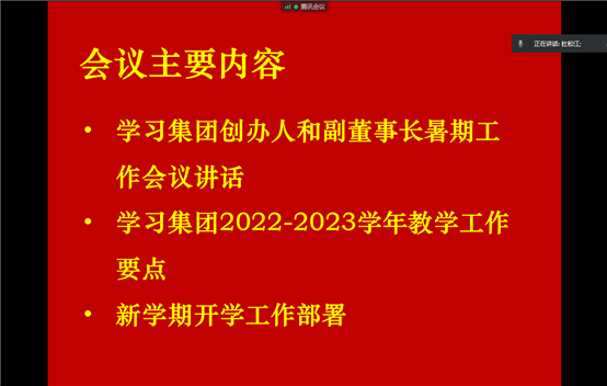 本网讯 为深入学习贯彻集团领导暑期工作会议讲话精神,部署分院新学期开学工作,8月27日19点30分,信息工程学院通过“腾讯会议”召开了新学期开学工作会议,组织学习了集团创办人和副董事长暑期工作会议讲话精神及集团学年教学工作要点。会议由分院李永全院长主持。