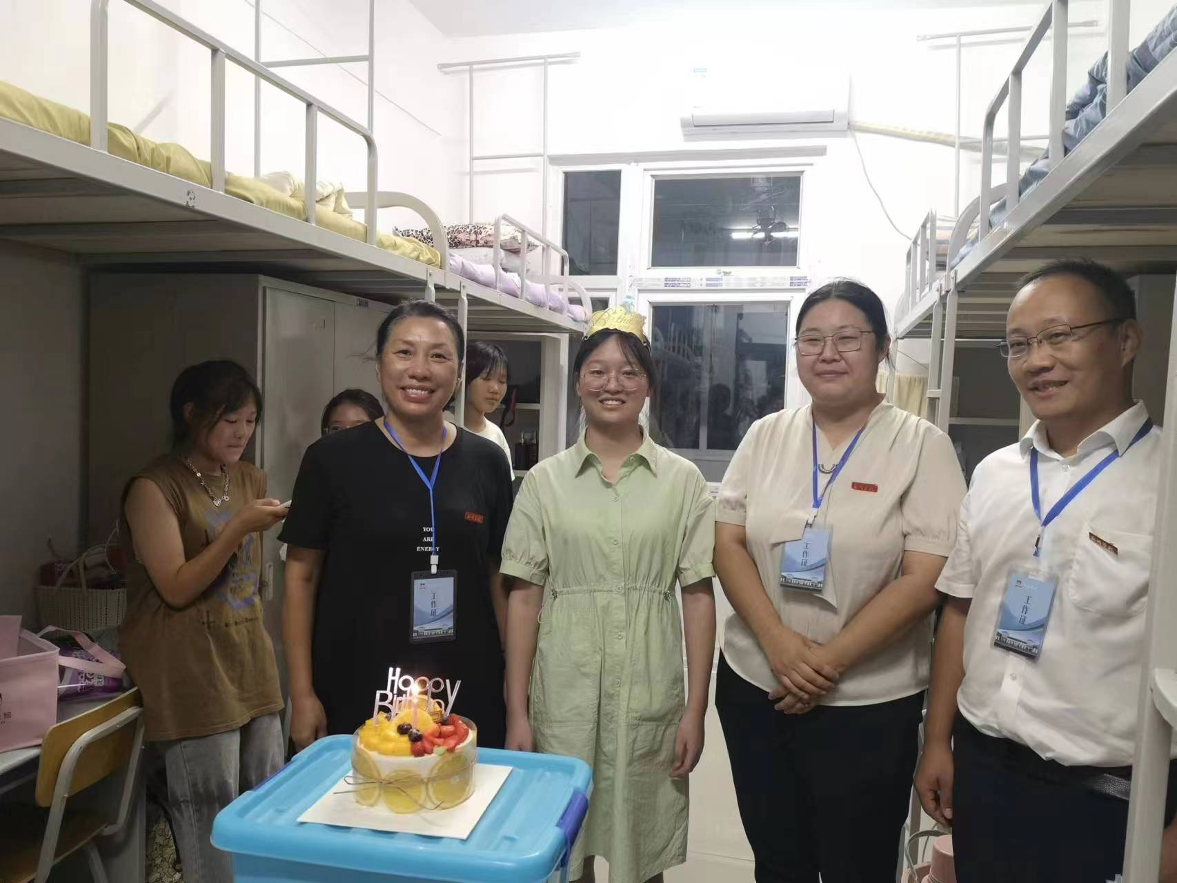 本网讯(记者 余紫滨)为在新冠疫情防控常态化的背景下确保2022级新生顺利完成注册报到,增强新生校园归属感,9月7日和8日,春来教育集团董事、湖北春来教育科技有限公司总经理丁锋,代理校长陆博,副校长付秋峰,分别在各分院领导及学校相关职能部门负责人的陪同下,深入新生宿舍为生日学子送祝福。