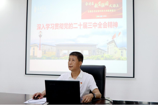 张晓彬分别从全会的基本情况、主要内容、重大举措等方面详细介绍了党的二十届三中全会精神,并结合学校实际,就如何弘扬教育家精神,抓好师资队伍建设,给出了意见。