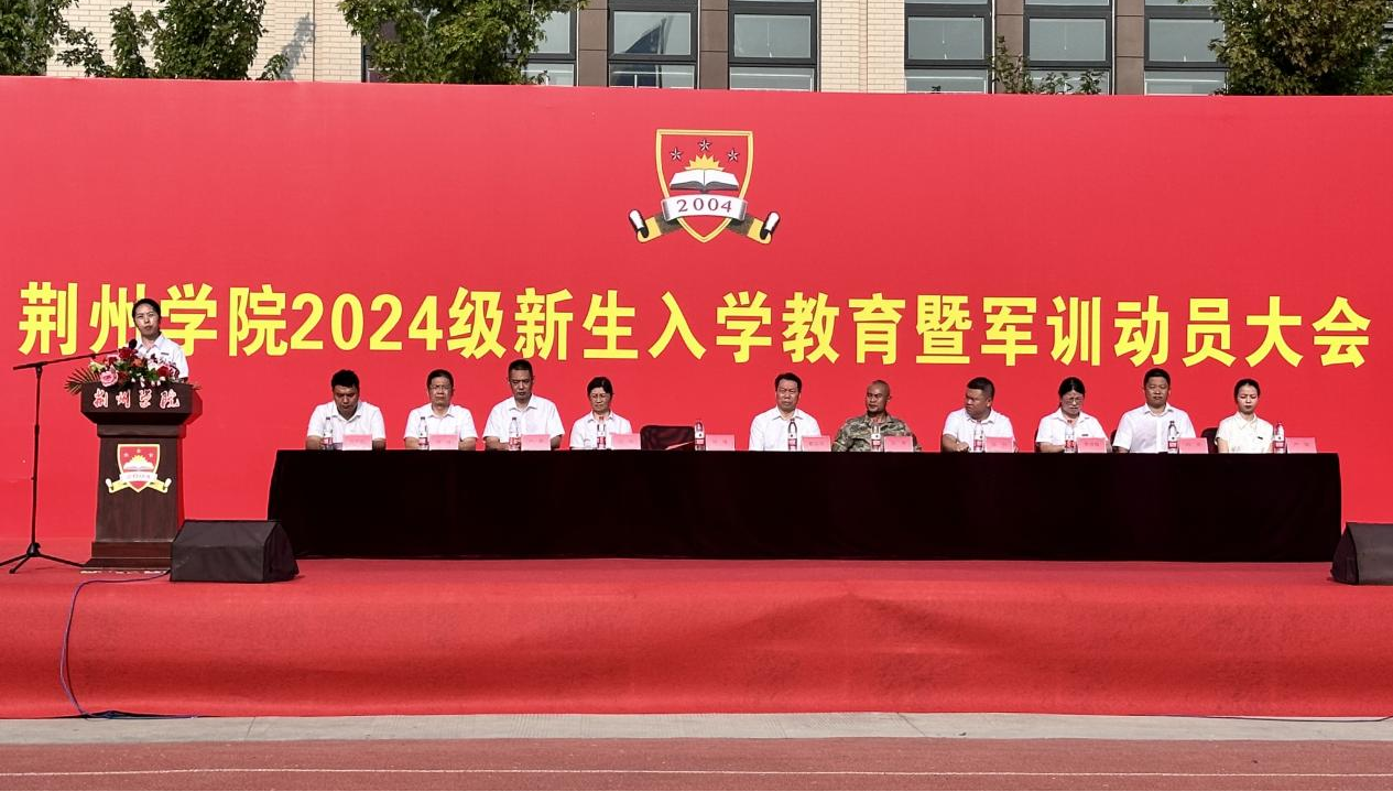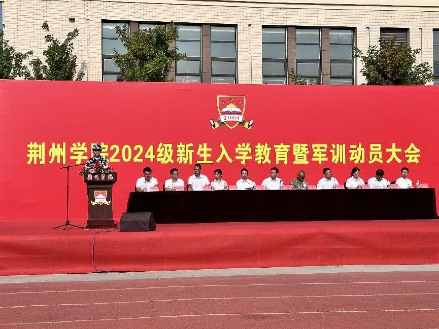本网讯 9月9日上午,学校隆重举行2024级新生入学教育暨军训动员大会。校长戴国强、副校长刘瑾、荆州军分区战备建设处副处长江海出席会议。各二级学院党总支书记、副书记、学工秘书,带训教官、新生班级辅导员及全体新生参加会议。会议由武装部部长许明超主持。