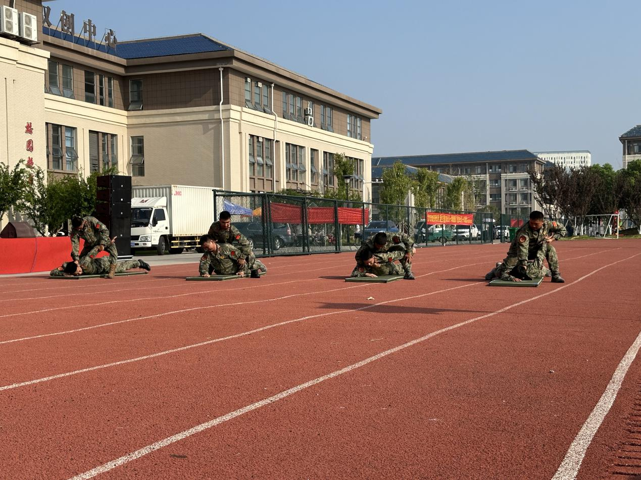 在教官示范表演中,教官们以高昂的士气、严整的军容、挺拔的军姿、嘹亮的口号、整齐的步伐为全体新生进行动作要领示范。他们英姿飒爽,尽显军人风采,赢得了在场领导和观众的阵阵掌声。