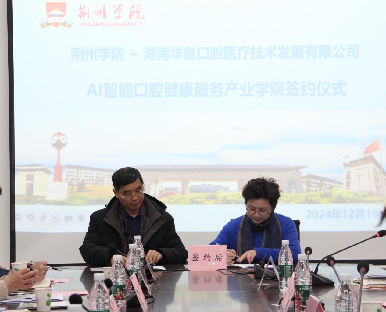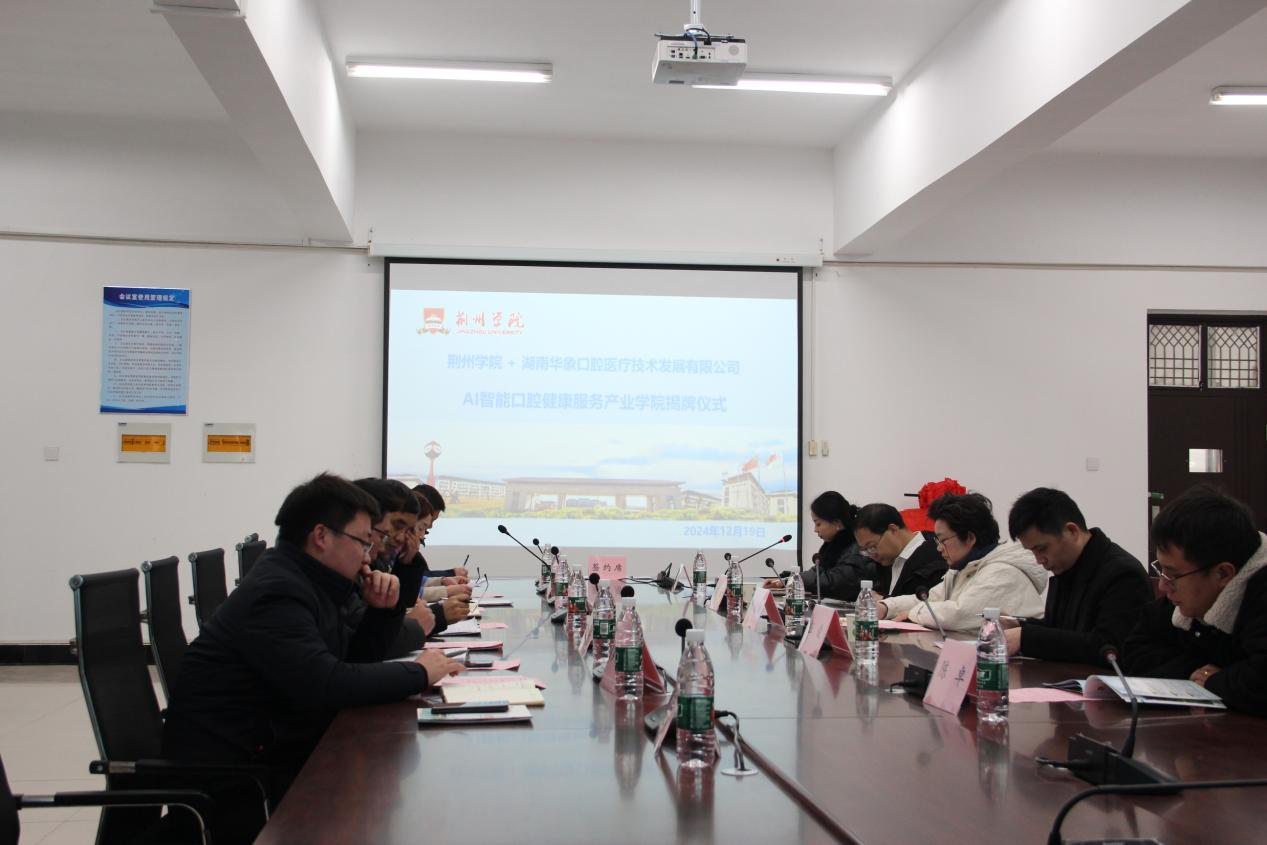 本网讯(通讯员 曾侨侨)12月19日,WilliamHill中文官方网站与湖南华象口腔医疗技术发展有限公司共同举办的AI智能口腔健康服务产业学院签约、揭牌仪式在1101会议室隆重召开。本次会议主持人为健康医学院党支部书记严琼 ,出席嘉宾有:湖南华象口腔医疗技术发展有限公司副总经理陈健梅、校企合作部部长刘金、湖南省紫百合义齿科技有限公司生产总监伍俊、WilliamHill中文官方网站副校长聂好春、教务部部长牟海霞、信息工程学院副院长张继成、教务处副处长申文明、人事处科长罗华乐、创新创业中心负责人孙龙、健康医学院团总支书记陈卓等。