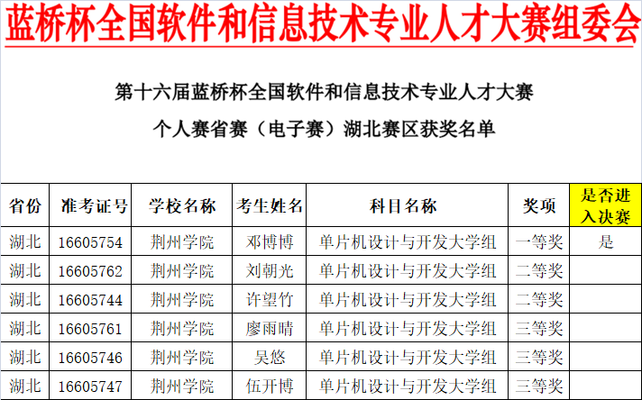 此次大赛成绩再次刷新了我校蓝桥杯获奖记录,为学校在电子信息技术领域的发展成就再添浓墨重彩的一笔。既是对学校长期以来对学科建设和人才培养的充分肯定,也将激励更多学子积极投身于专业学习和实践创新中。在未来的日子里,信息工程学院将继续完善参赛学生选拔方案,优化赛前辅导方式,秉持我校优良的办学传统,不断深化教育教学改革,培养更多高素质、创新型的信息技术专业人才,在各类赛事和行业领域中再创佳绩,为学校的发展和学生的进步做出新的更大贡献!