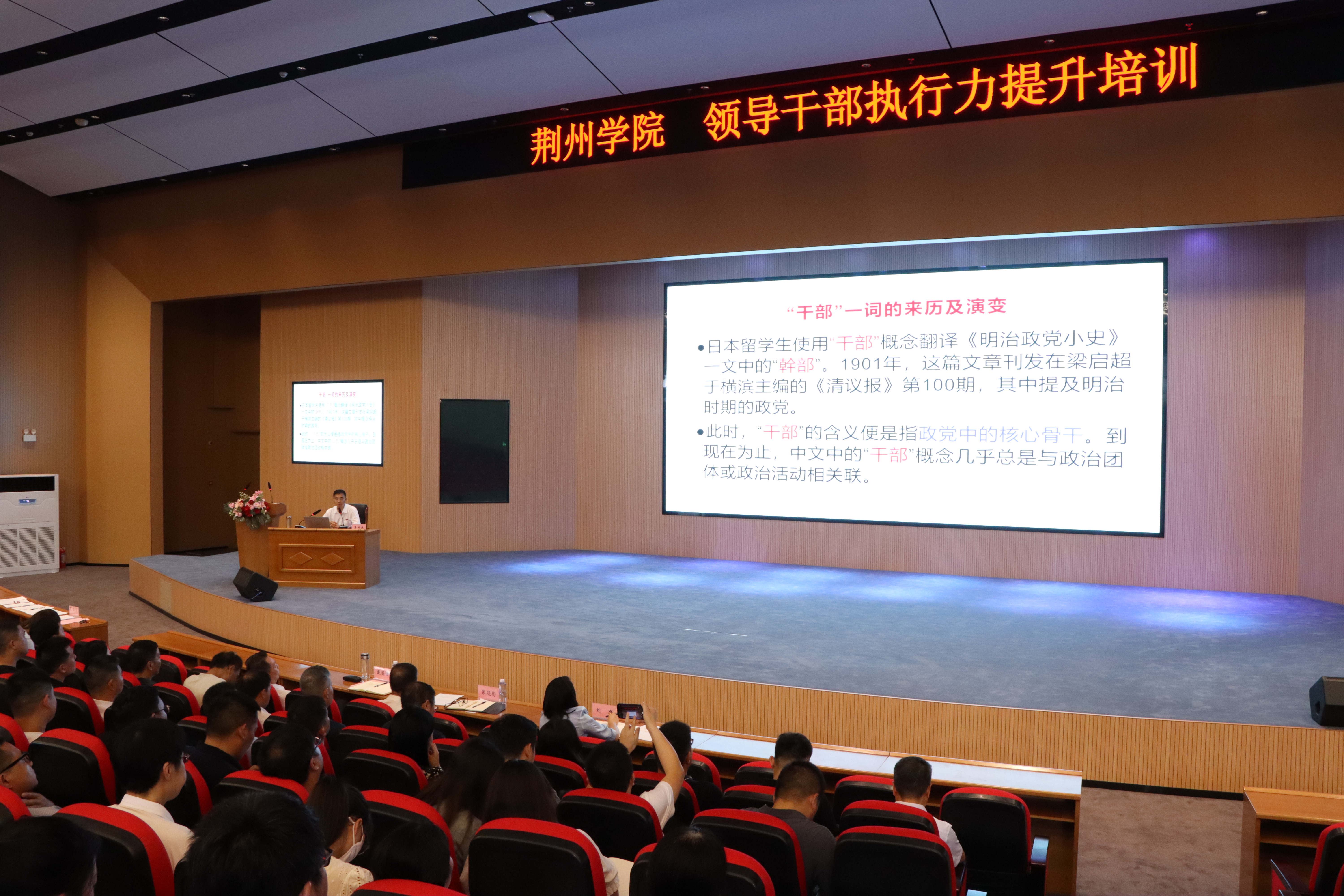 副校长聂好春教授以《凝心铸魂 对标争先,强基提能 担当作为——如何成为一名堪当重任的高素质专业化干部》为题作专题讲座。从六个方面阐述如何成为一名堪当重任的高素质专业化干部:一是学校高度重视干部培训工作。毛泽东曾提出:“政治路线确定之后,干部就是决定的因素。”强调了干部的重要作用,而中层干部是高层决策的执行者和基层工作的组织者,处于承上启下、执行者、中坚力量、参谋助手的重要位置。二是支点建设需要一支堪当重任的高素质专业化干部队伍。习近平在湖北考察时强调:要鼓足干劲、奋发进取、久久为功、善作善成,在长江经济带高质量发展中奋勇争先,加快建成中部地区崛起的重要战略支点,奋力谱写中国式现代化湖北篇章。湖北启动“干部素质提升年”并实施六大行动:凝心铸魂行动、对标争先行动、强基提能行动、破解“乱作为、不作为、不敢为、不善为”问题专项行动、弘扬“四下基层”优良传统行为、“清廉湖北”建设行动。荆州市委书记汪元程提出以更高定位更高标准更高要求加强干部队伍建设,为荆州打造全省支点建设先行区提供保障。三是以更高定位、更高标准、更高要求加强干部队伍建设。党员干部一定要加强理论学习、厚实理论功底,弘扬教育家精神和春来教育集团“三吃六心”精神(吃苦、吃亏、吃气;良心、决心、恒心、信心、感恩心、平常心),以荆楚文化“筚路蓝缕、以启山林”的开拓进取精神作为前行的动力。四是提高履职能力,努力提高干部尤其是年轻干部必备的“八种本领”和“七种能力”。要提升干部的领导力,不单是管人的能力而是影响人的能力,不单是激励下属的说教能力,更包括感化下属的身教魅力,不是仅仅靠自己行动,而是号召大家一起行动。要提升干部的执行力,加强团队建设,把握好正副职的“为”与“不为”。五是以荆州名人张居正和关羽为例,学习其优点,吸取其教训。张居正勇于任事、实干担当,“工于谋国,拙于谋身”“宁有瑕而为玉,毋似玉而为石,愿以深心奉尘刹,不予自身求利益”的精神值得学习,关羽因骄而败也给年轻干部带来了沉思。六是加强干部修养的五个必修维度。认清责任、知重而行,全面练就“铁肩膀”的责任担当;胸怀大局、把准方向,着力建设“响当当”的领导班子;倾心倾力、严管善用,着力锻造“硬邦邦”的干部队伍;昂扬斗志、思进图强,全力提振“嗷嗷叫”的精神状态;务实重行、紧抓快干,努力锤炼“拼抢实”的工作作风。