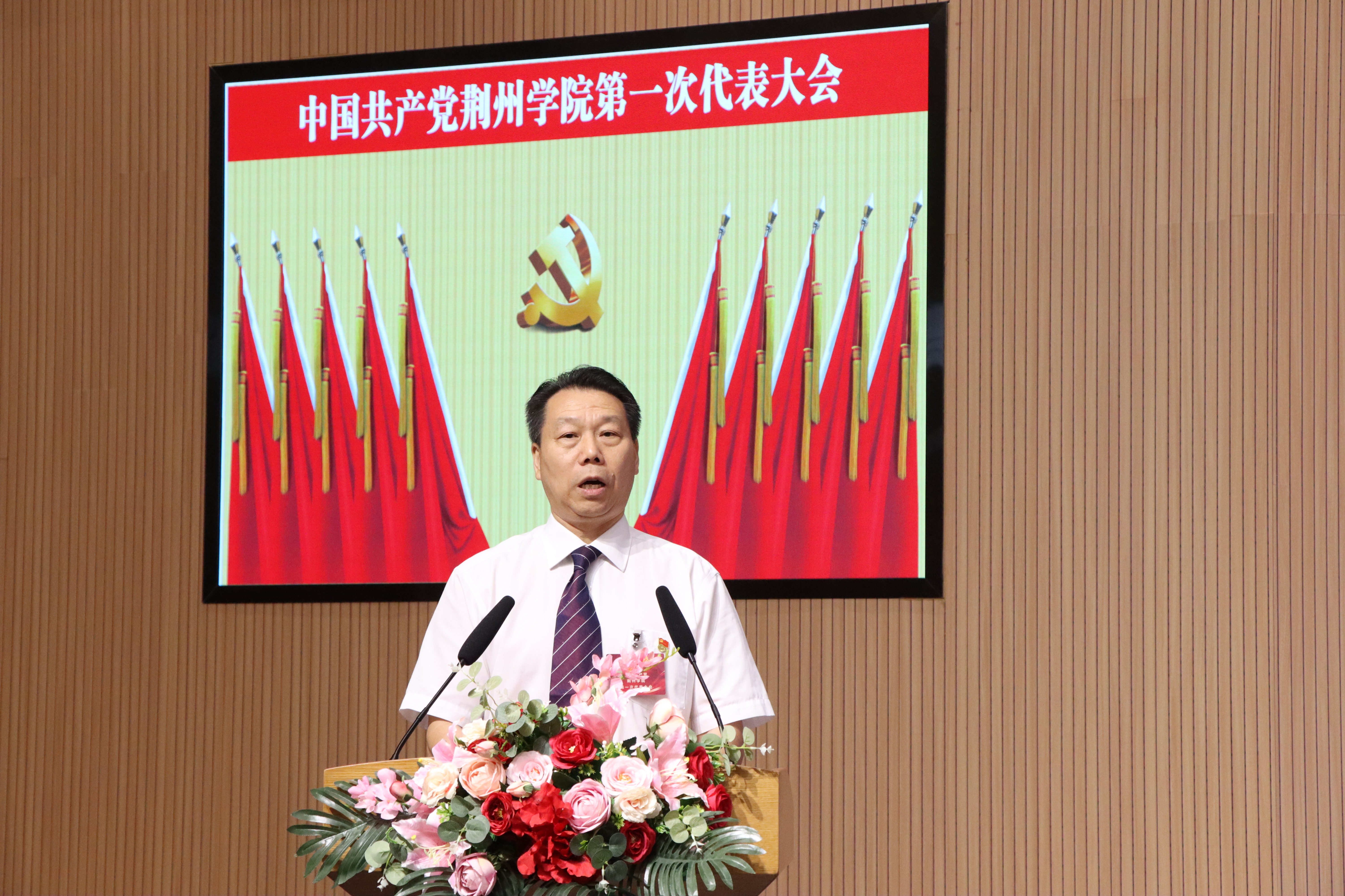 市教育局党组成员、市委教育工委副书记、市教育局副局长徐言章代表市委教育工委、市教育局,向大会的召开表示热烈的祝贺,向全体代表和全校师生致以诚挚问候。他指出,WilliamHill中文官方网站自转设以来,学院党委高举习近平新时代中国特色社会主义思想伟大旗帜,团结带领全院师生员工,凝心聚力,锐意进取,在党的建设、人才培养、社会服务等方面取得了显著成绩,为荆州市高等教育事业和经济社会发展做出了积极贡献。他提出三点要求:一是按照全面从严治党要求推进学校党的建设,为创建应用型特色大学提供坚强保证;二是切实抓好大学生思想政治教育工作,努力培养中国特色社会主义事业合格建设者和可靠接班人;三是加快推动学校改革发展,为荆州经济社会高质量发展贡献力量。他期待,新当选的党委领导能够团结带领广大党员干部和师生员工,以"功成不必在我"的境界担当和"功成必定有我"的历史主动,开创学校高质量发展的新局面。