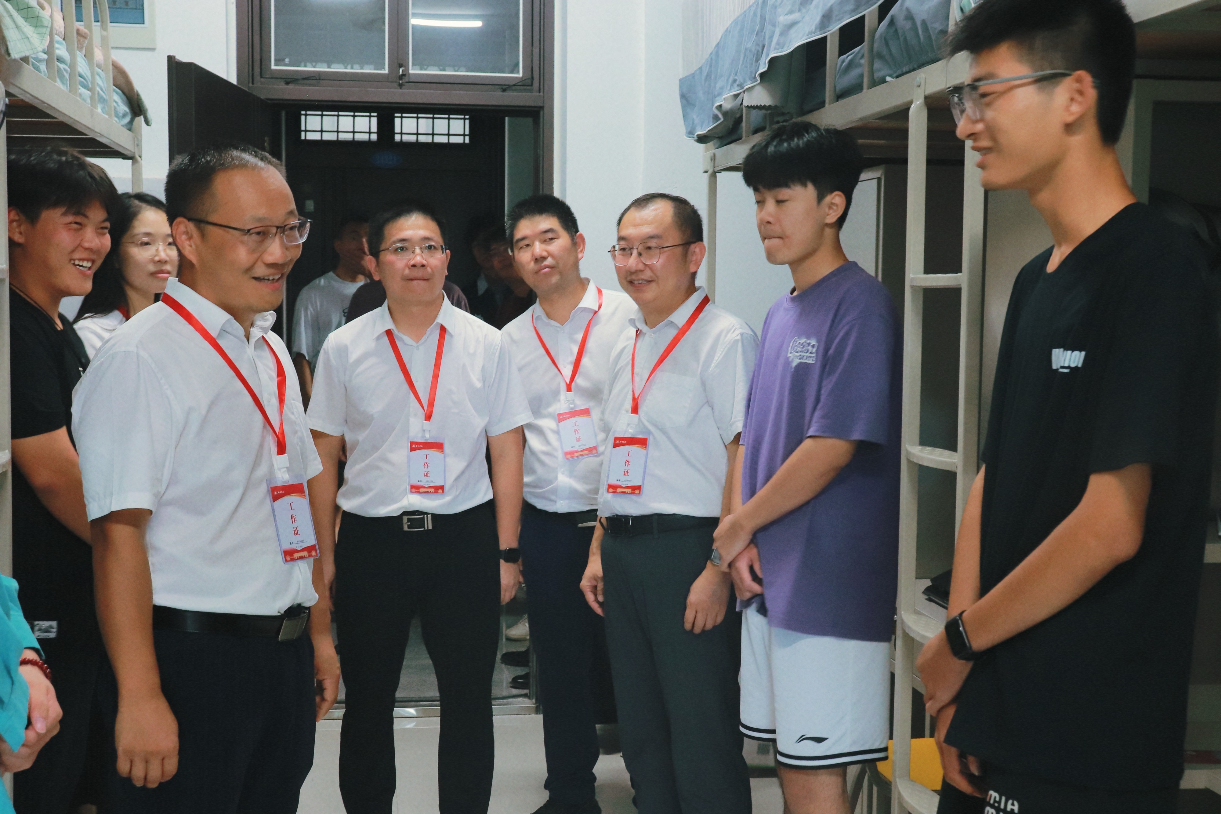 本网讯 为深入了解2025级新生的住宿环境和入学适应情况,传递学校对新生的关怀与温暖,帮助新生更快融入大学生活,9月5日下午,学校组织开展校领导带队走访新生宿舍活动。本次活动由学务部统筹安排,校领导分组带队,各二级学院共同参与。