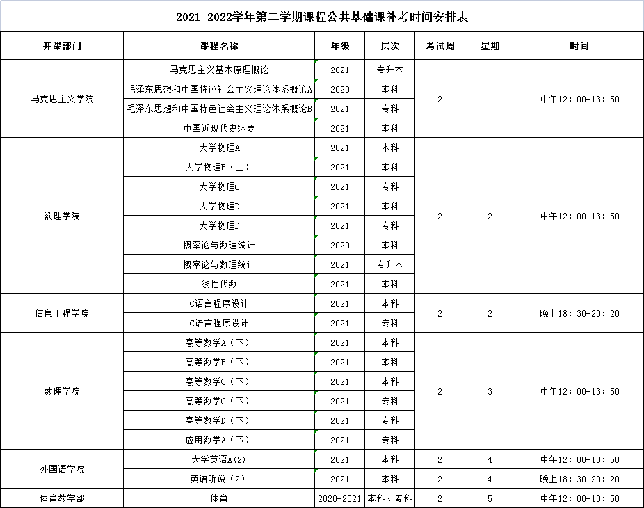 关于做好2021-2022学年第二学期课程补考工作的通知