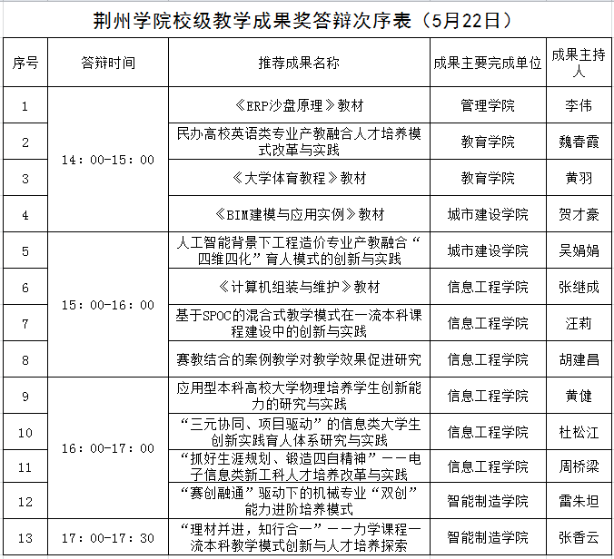 1.所有参与汇报的教学成果原则上必须由成果负责人汇报,各二级学院院长、副院长(主持工作)、项目组成员列席参会。