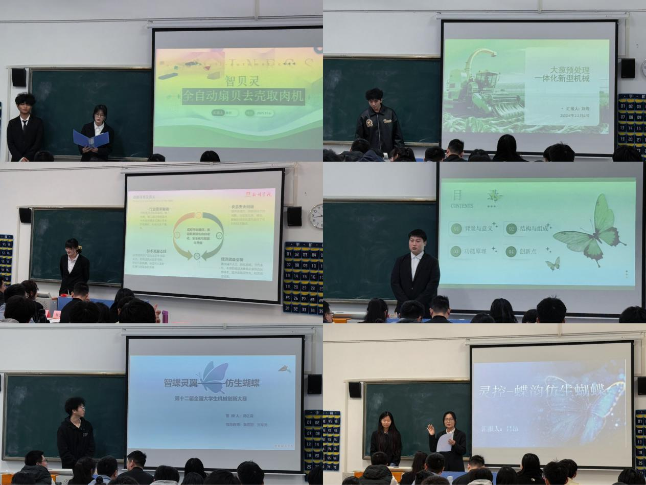 本届决赛共十项作品入围,涵盖农业加工、环保设备与智能仿生等领域。其中,“生菜洁净化处理包装一体化机械”通过柔性夹持与旋转切割机构,实现去根、清洗、包装全自动化,其毫米级精度控制受到评委关注。“白鲢初加工一体机”集去鳞、剖腹、清内脏等于一体。仿生作品“蝶形智飞器”则以其动力学设计引发讨论,团队表示将根据评委建议进一步优化结构。