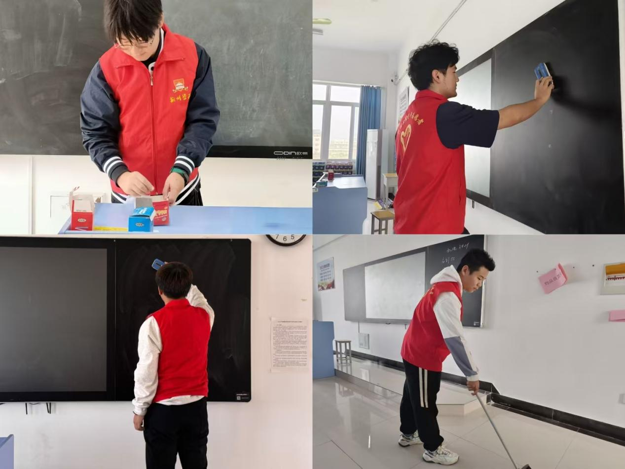 活动开始前,志愿者们被分为若干个小组,每个小组都被分配到指定地点。接着,由志愿者负责人进行考勤签到,并对清扫范围进行了合理分工。教室里,同学们分工明确,细致认真,确保每一个角落都一尘不染。忙碌的身影还透露着细心和耐心,每一个动作都充满能量,每一滴汗水都是他们热情的结晶。经过大家的努力,原本略显杂乱的教室焕然一新,桌椅摆放整齐有序,干净的黑板能反射出窗外的阳光。他们劳动的身影散落在教室的各个角落,成为了一道亮丽的风景线。