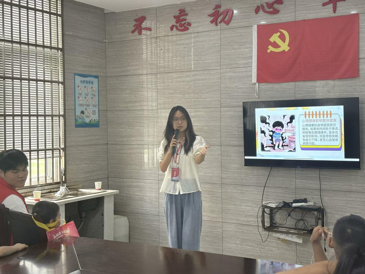 课堂上,学生讲师们用童趣十足的PPT和生动故事,将抽象的心理知识转化为小朋友们易于理解的内容。面对孩子们可能遇到的学习压力、友谊矛盾等问题,学生讲师们结合自身经历,分享“把烦恼画出来”“做深呼吸小超人”等趣味调节方法。在问答互动环节,小朋友们踊跃举手提问,“小老师们”蹲下身耐心解答,现场充满欢声笑语。