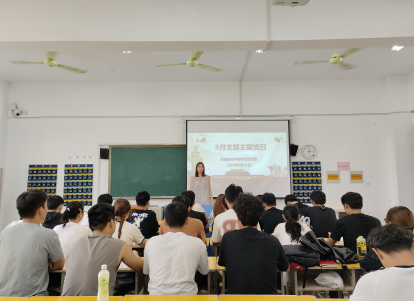 随后,各党支部召开了9月党支部主题党日活动。会上,全体党员重温入党誓词,并缴纳了本月党费。理论学习环节,廖家辉同志带领大家学习了习近平:在纪念中国人民抗日战争暨世界反法西斯战争胜利80周年大会上的重要讲话及相关重要内容。随后,教职工党员及学生党员分别围绕“如何将学习教育成果转化为实干担当的具体成效?”“传承抗战精神,勇担时代使命,如何在强国建设中彰显青春力量?”展开研讨。马进同志表示:在校大学生当以抗战精神为魂,深耕专业知识筑牢强国根基,积极投身科创实践、社会服务,用实干把青春理想融入强国建设的壮阔征程。