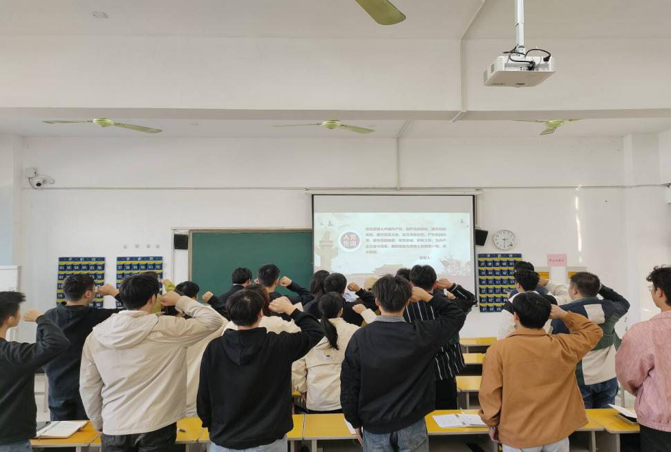 随后,各党支部召开了9月支部主题党日活动。会上,全体党员重温入党誓词,并缴纳了本月党费。理论学习环节,李紫民同志带领大家学习了庆祝中华人民共和国成立76周年招待会在京举行习近平发表的重要讲话及相关重要内容。随后,支部党员围绕“学习习近平总书记在庆祝中华人民共和国成立76周年招待会上的重要讲话精神”,对于如何立足岗位,只争朝夕、永不懈怠的奋斗精神,服务中国式现代化建设展开研讨。张宇轩同志表示:作为智能制造专业的学生党员,我们既要打牢理论基础,在自动化控制等核心技能上精益求精,也要主动走进企业实习实践,了解行业真实需求。多思考如何将课堂所学转化为解决生产实际问题的能力,未来能以专业能力为国家制造业高质量发展贡献力量,不辜负总书记对青年“服务经济社会发展”的期望。