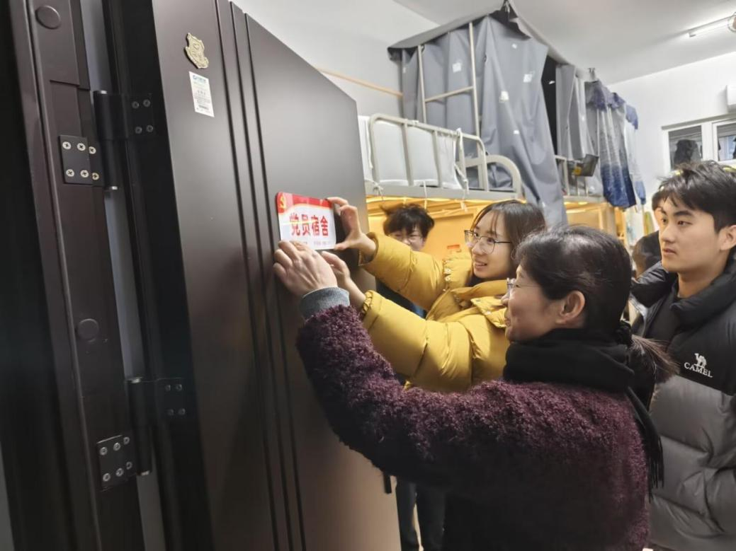 挂牌仪式现场,两位书记亲手将“党员宿舍”牌匾挂到寝室门上,并与同学们亲切交谈。王书记强调,“党员宿舍”挂牌既是一份荣誉,更是一份沉甸甸的责任与担当。她寄语全体学生党员,要以寝室挂牌为契机,在思想引领、学风建设、日常管理等方面走在前、做表率,主动亮明党员身份,带动身边同学共同进步,让党旗在学生宿舍高高飘扬。