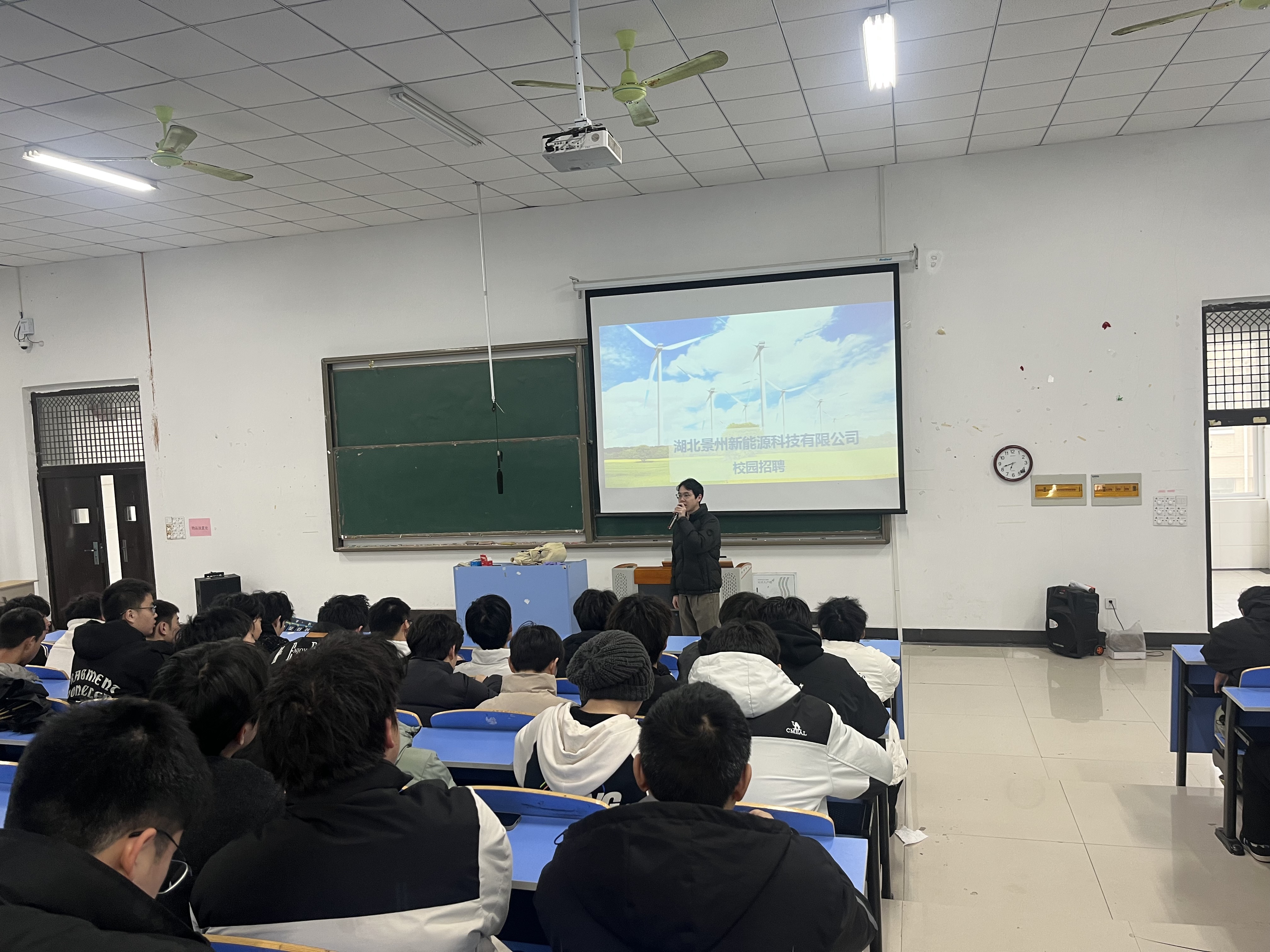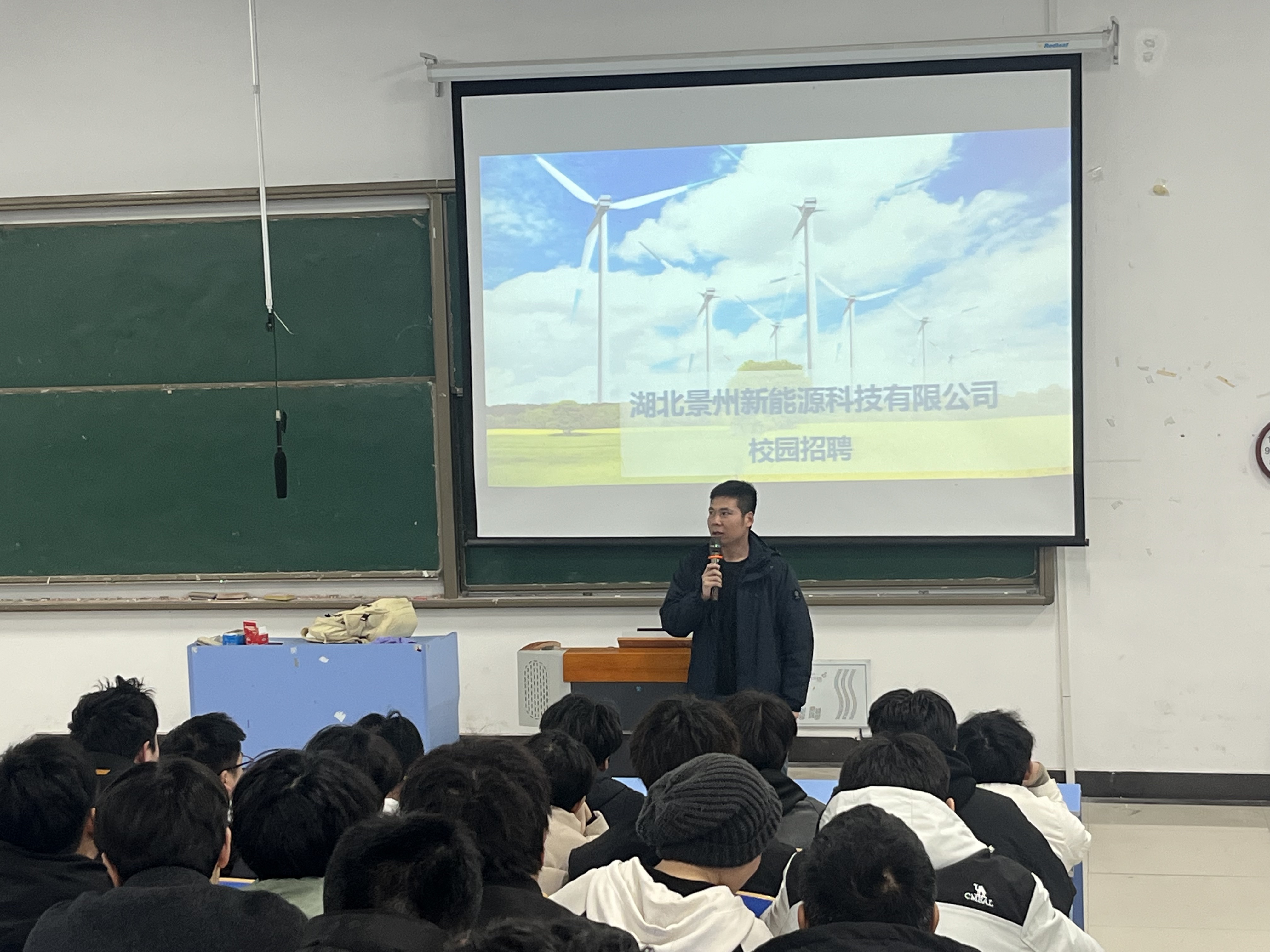 宣讲会上,湖北景州新能源科技有限公司陈经理详细介绍了企业的发展历程、核心业务、技术优势及未来规划。作为一家专注于新能源技术研发与应用的高科技企业,公司重点展示了在智能制造、绿色能源等领域的创新成果及人才需求。陈经理结合行业发展趋势,围绕同学们关注的岗位需求、职业发展路径、薪资福利等内容做了深入解读。
