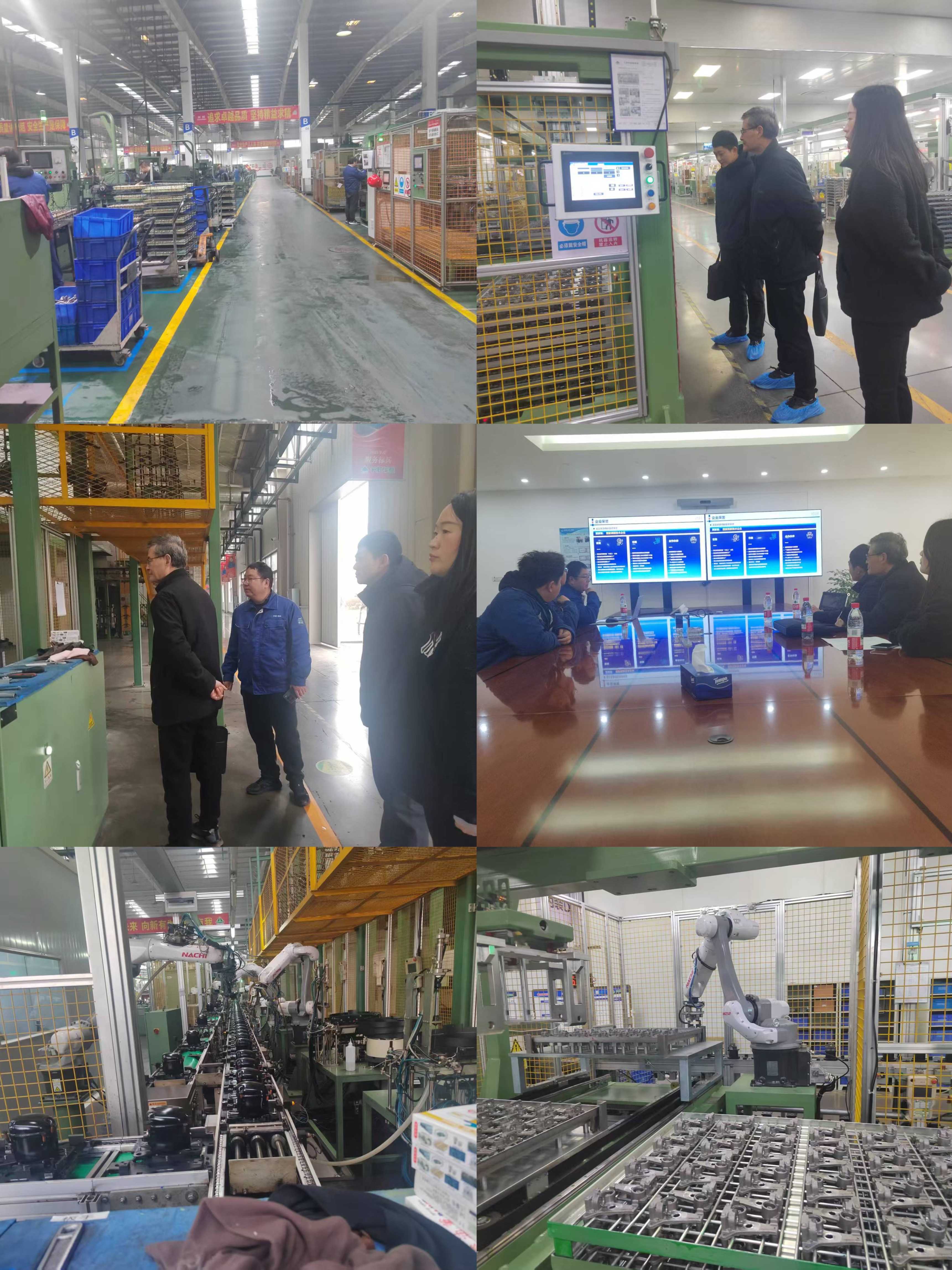 在孔杰部长陪同下,眭满仓院长一行深入企业总装车间、封焊线、成品线、部装线等核心生产区域,实地观摩自动化生产线、六轴机器人自动焊接整线、机器人自动码包系统等智能装备运行情况,详细了解企业“智改数转”建设成效、生产工艺流程及自动化产线运营管理,直观感受智能制造在核心工序、物流终端、复杂制造场景中的应用优势。