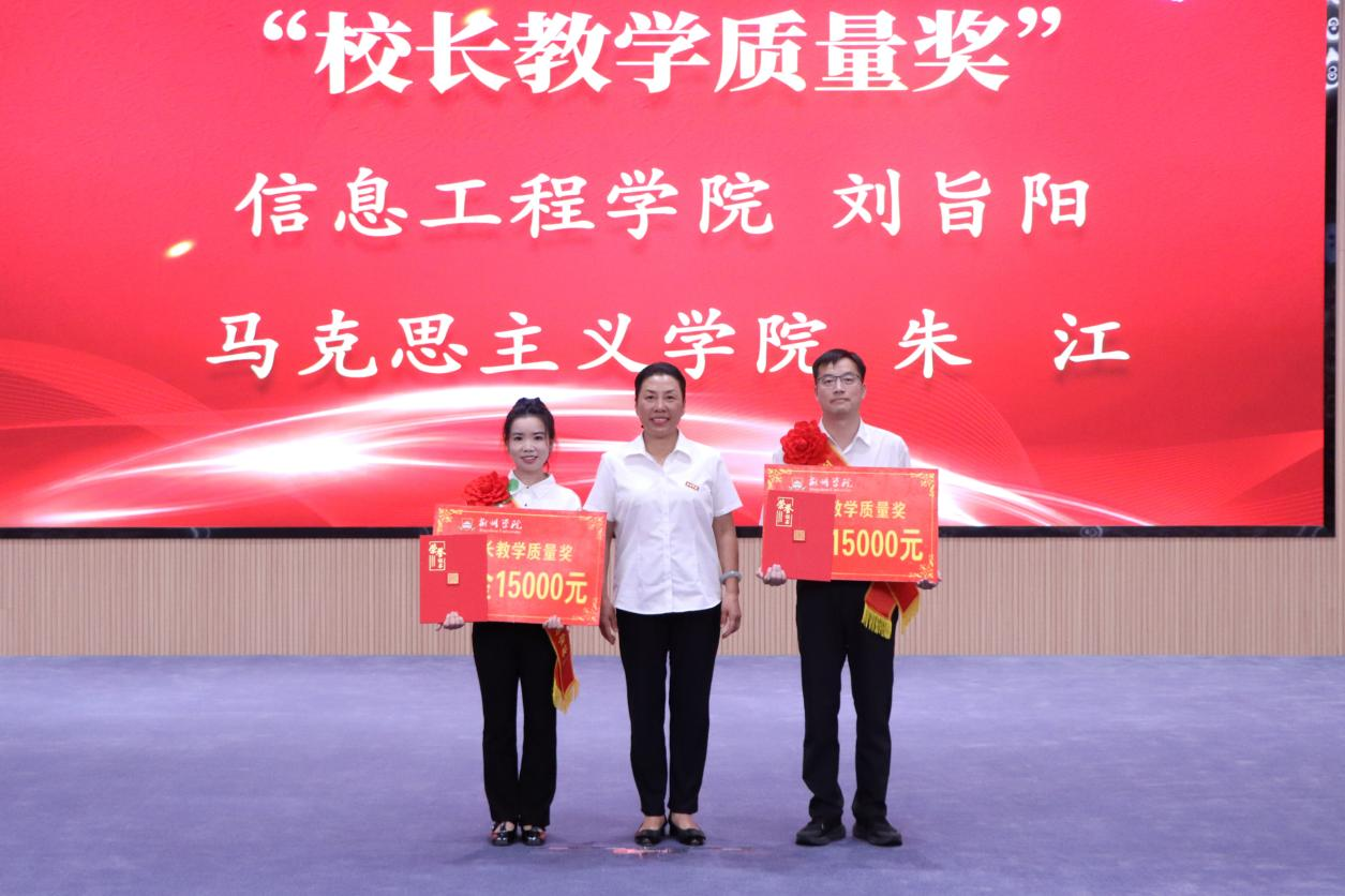 校长教学质量奖获得者,信息工程学院刘旨阳老师作为教师代表上台发言,他感恩学校的肯定与同事的帮助,并表示将以这份荣誉为动力,秉持初心、恪守师道、不负信任,以赤诚之心育桃李,为教育事业砥砺前行!