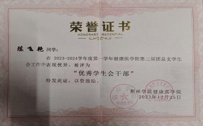 2023-2024第一学年健康医学院团总支学生会“优秀学生会干部”