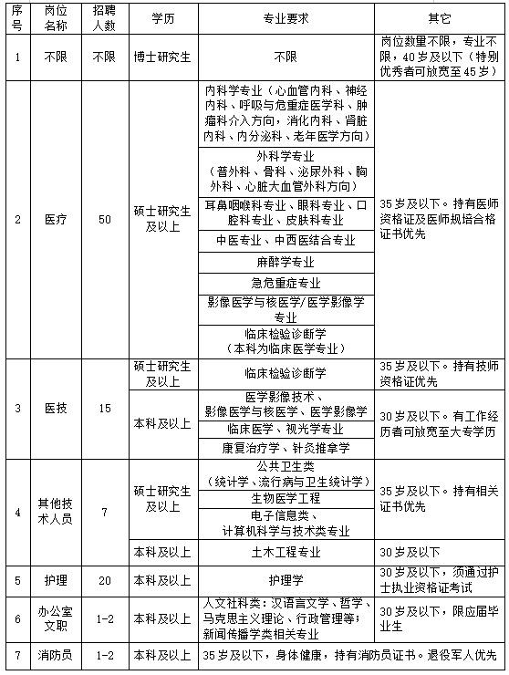 注:博士学历和医疗专业招聘常年招录,择优录用。