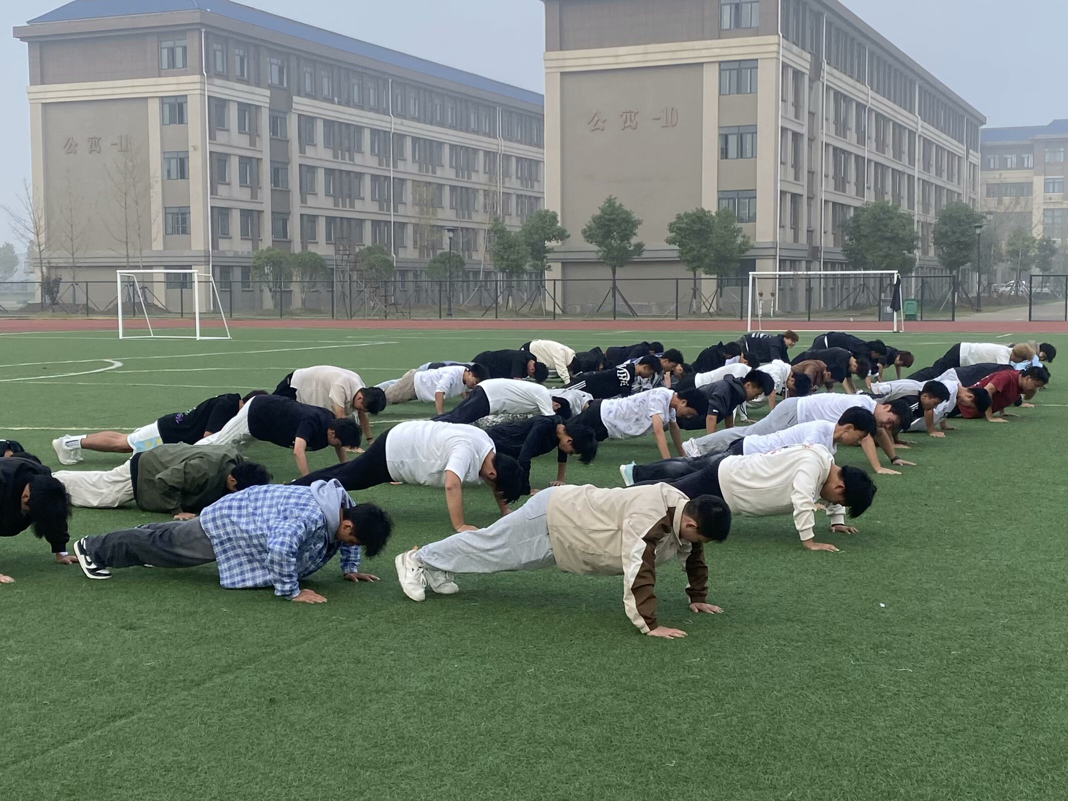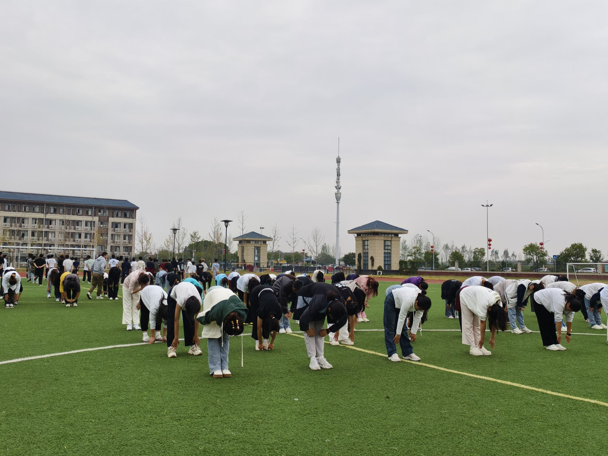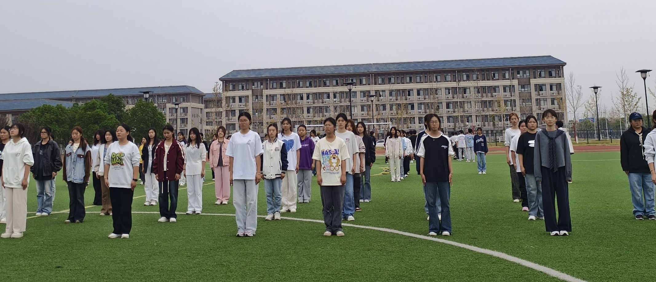 秋日的清晨,微风轻拂带来丝丝凉意,干事们提前到达操场等待点名。点名完毕后,由教官带领干事们进行了热身运动。伸伸手臂、压压腿,活动活动手腕、脚踝,一招一式,干事们都认认真真完成。整齐有序的队伍成为了操场上一道靓丽的风景线。
