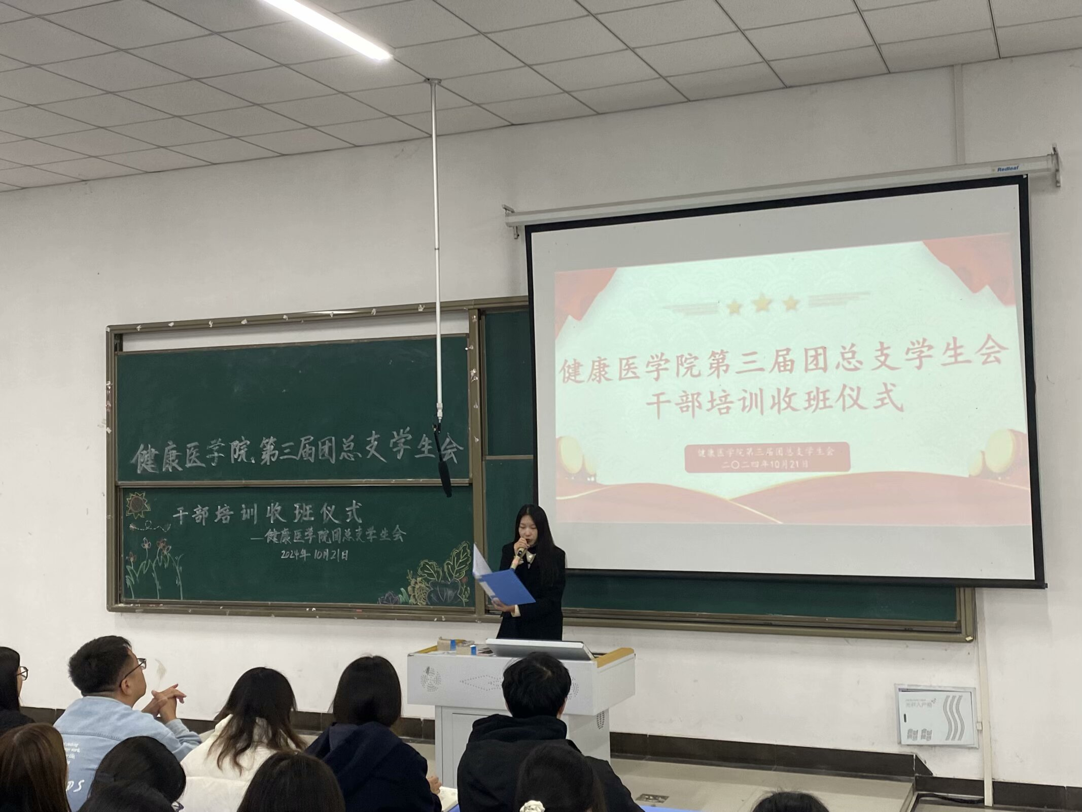 10月21日中午,健康医学院在3105教室召开第三届团总支学生会干部培训收班仪式,健康医学院团总支书记陈卓老师及学生会主席团成员出席会议,本次会议由办公室主任沈玉婷主持。