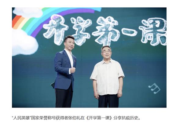 第三篇章:邀请了“人民英雄”国家荣誉称号获得者张伯礼、陈薇,复旦大学附属华山医院感染科主任,博士生导师张文宏,中国痰控中心流行病学首席专家博士生导师吴尊友,航天科技集团五院北半三号导航卫星首席总设计师一同为我们讲解了科学的重要性。使我们更加深刻的认识到科学的力量