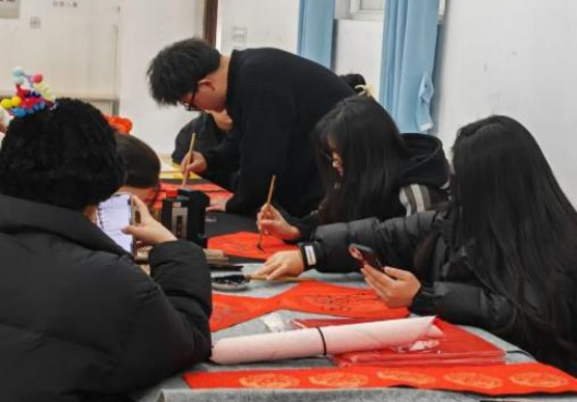 本次活动以集赞送春联和玩游戏获灯笼福字。“喜迎新春送对联,笔墨浓重同学情。”春联,属于楹联的一种,是一种独特的中国文学形式,彰显着新春的喜庆气氛。灯笼,象征着阖家团圆、事业兴旺、红红火火,可以营造一种喜庆欢乐的氛围。福字,寓意一切顺利、福气到来、平安健康,象征着人们对未来美好生活的向往。借此次机会,向同学们传递新年祝福,更是向大家展示书画的魅力。活动结束后,同学们纷纷表示,这次活动不仅让他们感受到了新年的满满氛围,还感受到了传统文化的魅力。