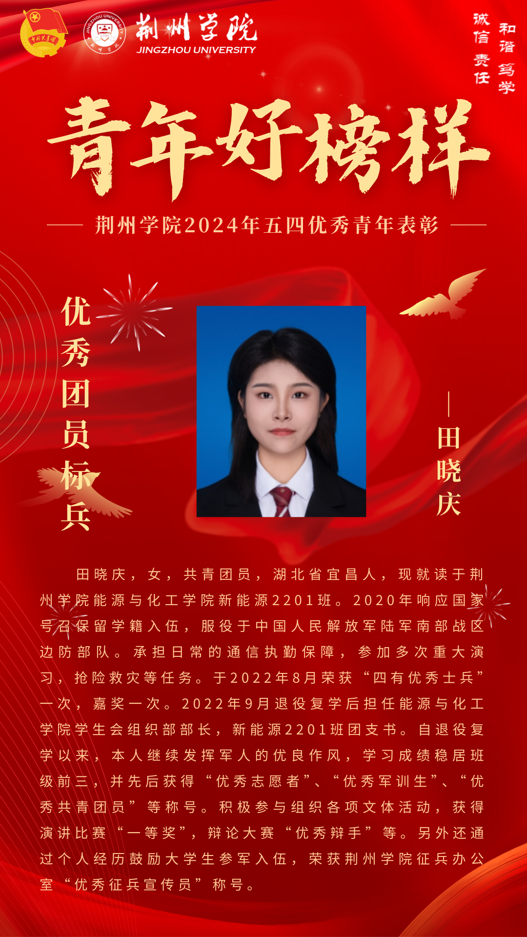 2024年五四优秀团员标兵——田晓庆