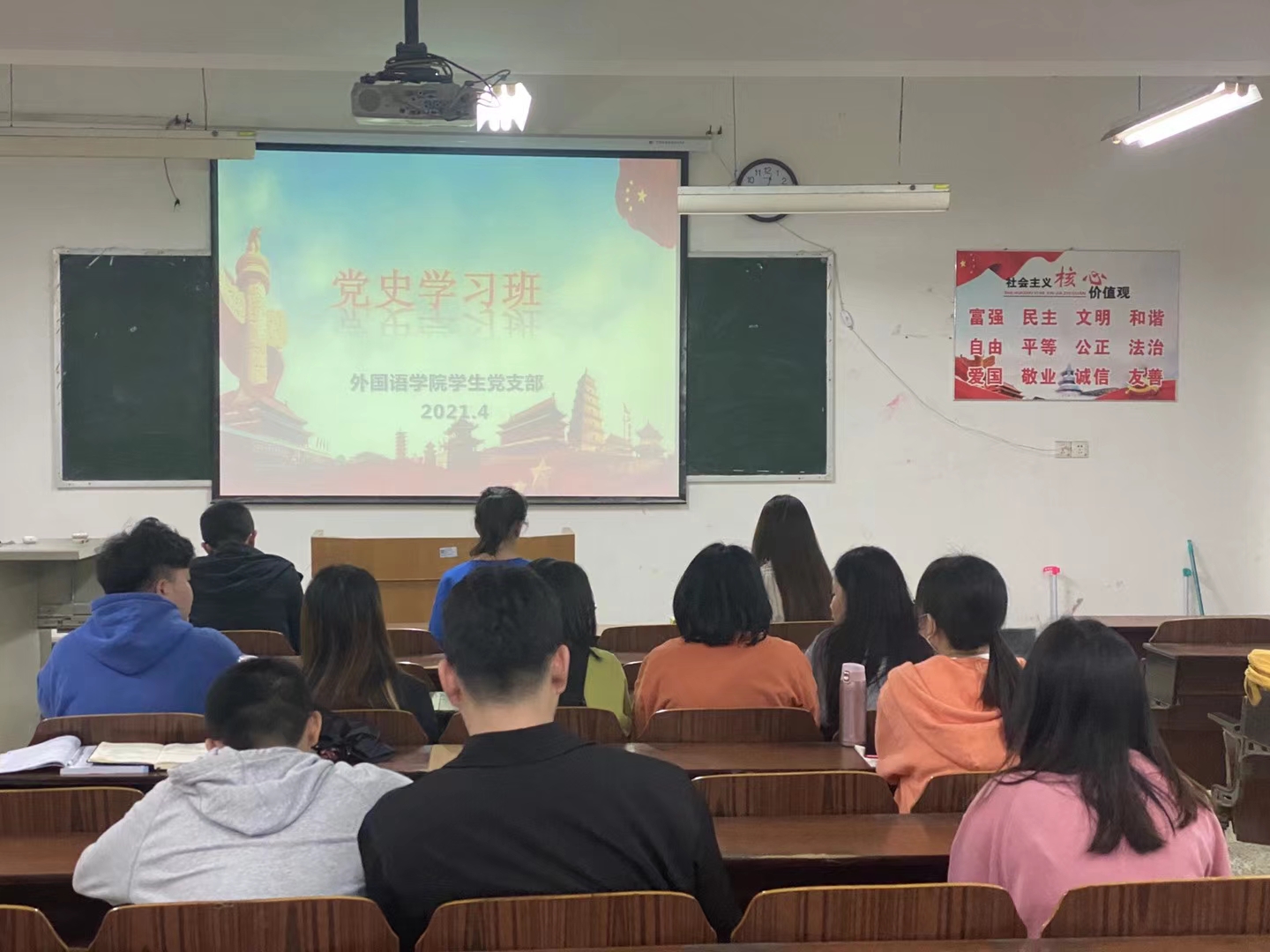 本网讯(通讯员 何龙)为进一步加强党员同志教育,引领党员同志学党史、跟党走、强信念,外国语学院学生党支部于4月27日晚上,在教学楼209教室开展举办党史教育学习班。