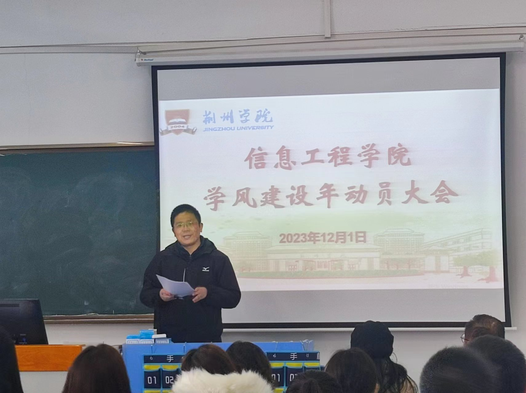 为进一步建设优良学风,建立长效机制,全力迎战本科教学工作合格评估,信息工程学院于2023年12月1日在5507召开了教学工作会议暨“学风建设年”主题活动动员部署大会。信息工程学院全体教职工参加了会议。