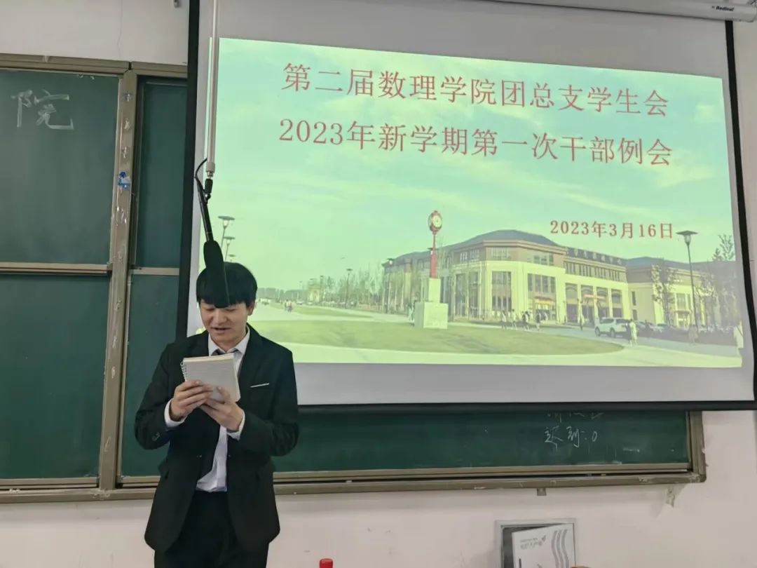 本网讯 一年之计在于春 ,又到了一年耕耘时。新的学期开启新的希望,新的空白承载新的梦想。为了加强学院学生组织的整体凝聚力以及各类活动和日常工作的开展,第二届数理学院团总支学生会2023年第一次干部例会于3月16日(本周四)18:10在5205教室召开,本次会议由综合服务部干事张正瑞主持,数理学院团总支学生会全员参与。