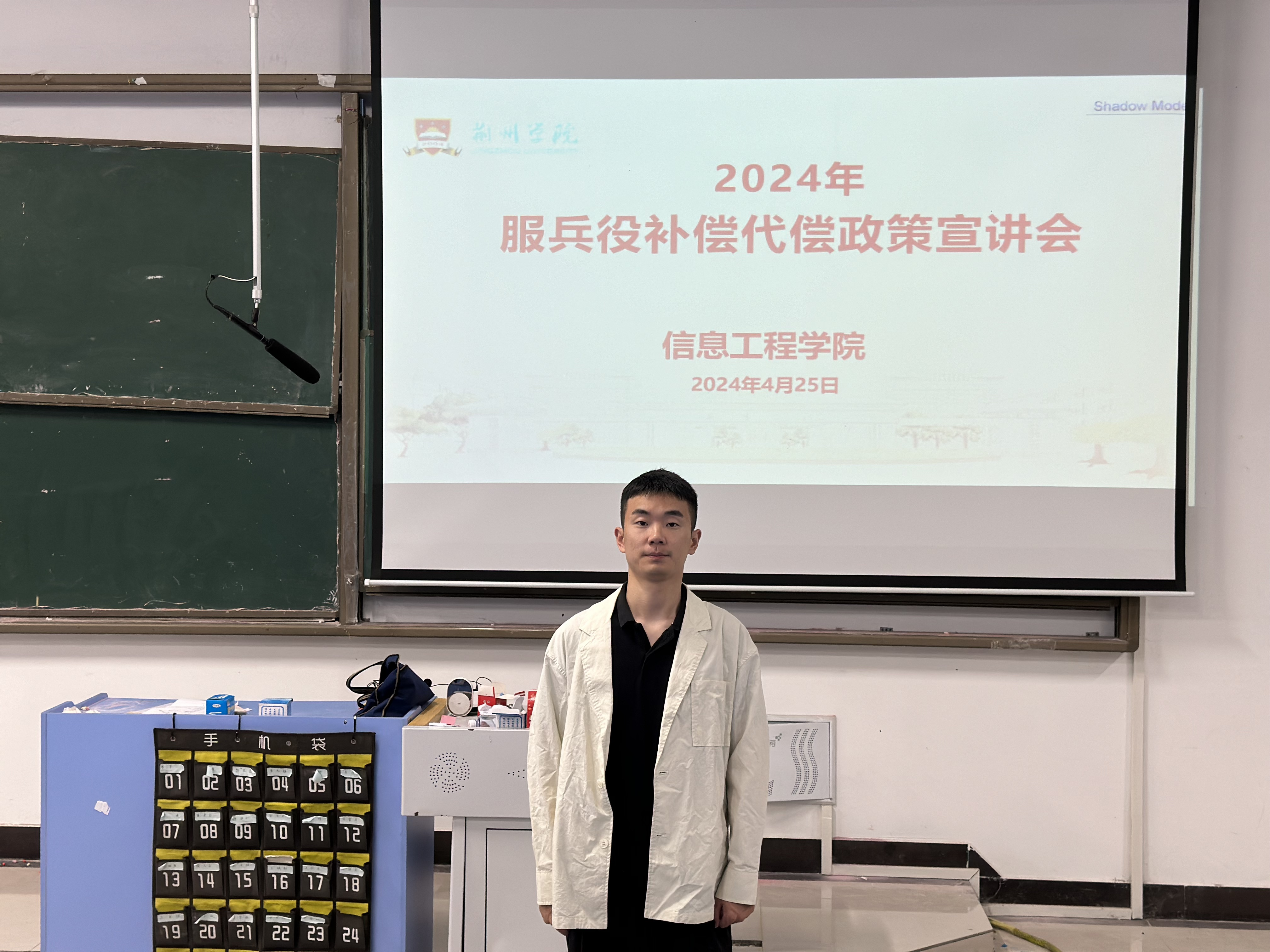 本网讯 随着国防事业的不断发展,国家对于青年服兵役的补偿代偿政策也在不断完善。近日,教育部、财政部等部门联合发布了2024年服兵役补偿代偿政策,旨在进一步鼓励广大青年积极投身国防建设,为国家的繁荣稳定贡献力量。信息工程学院于4月25日开展了2024年服兵役补偿代偿宣讲会,此次宣讲会主讲人为信息工程学院辅导员薛楚雄,信息工程学院辅导员和各班学生代表参加了本次宣讲会。